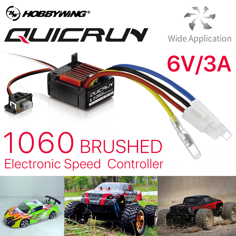 Informations sur le paquet : Dimensions du paquet : 9 x 6 x 2 cm. Étalonnage automatique de la gamme de gaz, facile à utiliser. Contrôleur de vitesse QUICRUN WP 10BL120 G2 (sans capteur) – Rc-Volt Forts avant Courant de crête : 60 A/360 A., Rev. Sortie BEC : 2 A/5 V (mode linéaire). Plage de tension : 2-3S Lipo ou 5-9 NiMH. Caractéristiques : Modèle : 1060 brosse. Grande capacité d'endurance de courant. Caractéristiques : Résistant à l'eau et à la poussière, adapté aux courses par tous les temps. ESC Brushed 60A Contrôleur Vitesse Électronique HobbyWing QuicRun 1060 60A - Brushé 2-3S Lipo - Étanche - Pour Voiture RC 1:10 Pièce Modélisme Sparkhobby Contrôleur Vitesse Esc Rc Voitures applicables : 1/10 tourisme, camion course, Rock Crawler et Tank Limite moteur : 2S Lipo ou 6 NiMH. Contrôleur de vitesse QUICRUN WP 10BL120 G2 (sans capteur) – Rc-Volt Moteur de taille 540 ou 550 : ≥ 18 T ou tr/min 4S Lipo ou 12 NiMH. Le mode marche avant / arrière / frein s'adapte à différents véhicules. Grande endurance de courant. Moteur de taille 540 ou 550 : ≥ 12 T ou RPM 3S Lipo ou 9 NiMH. Résistant à l'eau et à la poussière, adapté pour les courses par tous les temps. Fréquence PWM : 1 kHz. Non disponible Résistance : avant 0,001 Ω, arrière 0,002 Ω. Le mode avant/arrière/frein s'adapte à différents véhicules.