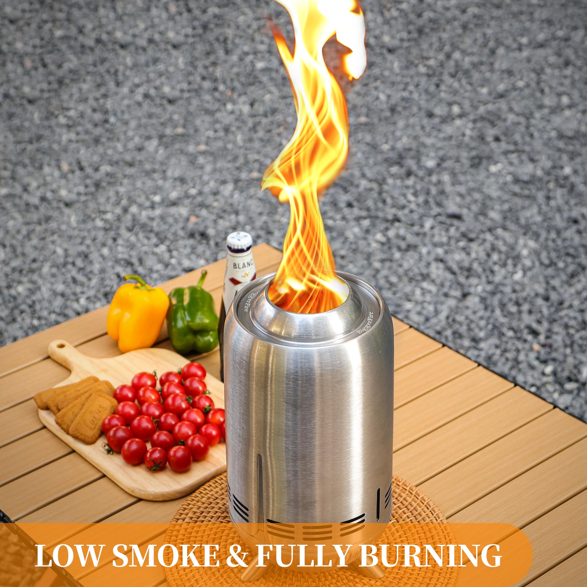 Rocket Stove BiggerFire Foyer De Table, Poêle D'extérieur En Acier Inoxydable Poêle Extérieur Sans Fumée Nous nous engageons à fournir un service client et un soutien exceptionnels pour notre brasero de table en plein air. Foyer de Table 150 x 205 mm, Brasero Portable en Acier Inoxydable... Mini Barbecue domestique sans fumée, une place, pl... – Grandado Pieds d'appui robustes et stables sur Veuillez ne pas rayer la surface avec des objets métalliques ou pointus. Dans le cas peu probable où vous rencontrez des problèmes, notre équipe réactive est prête à vous aider avec le dépannage ou les demandes de produits, assurant votre entière satisfaction avec votre expérience de foyer extérieur. Generc Mn Brasero sans fumée Foyer Portable de Table Brasero par des Cette cheminée de bureau entoure les flammes à 360 °, offrant une répartition homogène de la chaleur et améliorant votre expérience en plein air. Description du produit BiggerFire Foyer portable de table pour le camping et le jardin Que vous souhaitiez faire griller des marshmallows ou profiter de la chaleur d'un feu en soirée, nos foyers de table allient fonctionnalité et esthétique, ce qui les rend idéaux pour tous les amateurs de plein air. Son design innovant utilise efficacement le flux d'air pour obtenir une combustion secondaire et une efficacité de combustion optimale. Le poêle devient très chaud pendant le processus de combustion, évitez donc de le déplacer et faites attention aux brûlures, Pour une sécurité optimale, nous recommandons d'utiliser un tapis de table isolant en dessous. Améliorez votre expérience en plein air avec notre foyer de table : c'est le complément idéal pour créer des moments, des réunions et des événements mémorables ! Découvrez la beauté enchanteresse de notre foyer de table, avec des configurations de flamme uniques créant de superbes effets de tornade. La surface du foyer de table est recouverte d'une peinture céramique résistante aux températures élevées. L'effet unique de flamme en tornade crée une expérience visuelle captivante et une ambiance agréable.