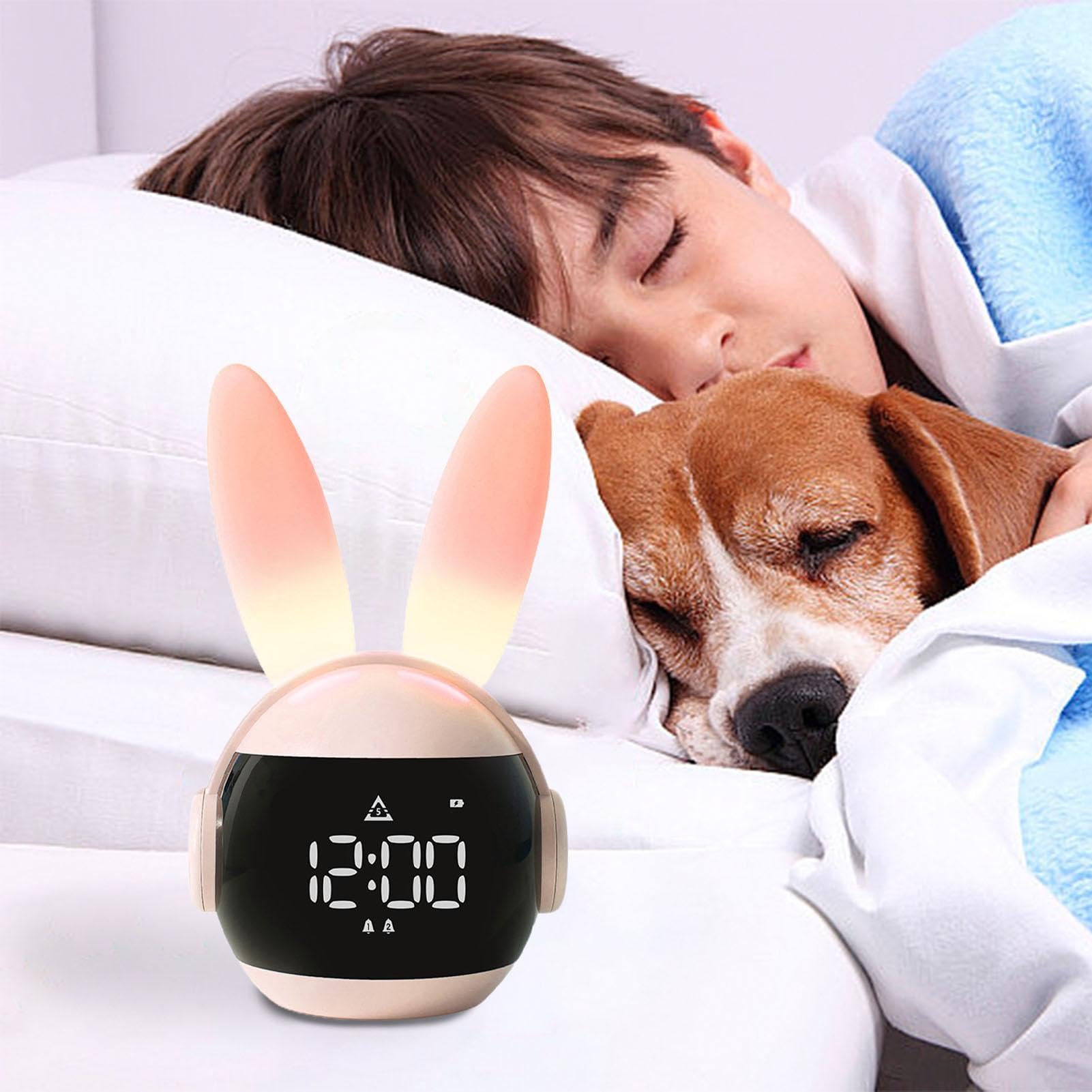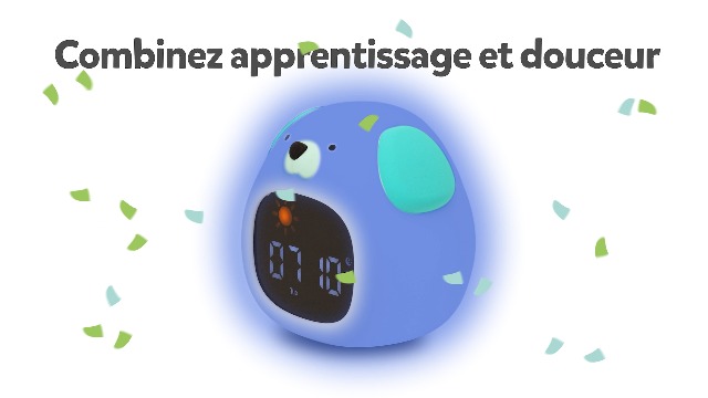 Time-to-sleep : éclairage rouge et son relaxant pendant 30 min à l'heure du coucher Description Le réveil éducatif et veilleuse Chien accompagne intuitivement les enfants à tout moment de la journée et de la nuit et favorise un apprentissage ludique du rythme de vie. Veilleuse : 6 sons de la nature et bruits blancs (pluie, feu, vagues, vent, aspirateur et criquets) Chaque matin, demandez à l'enfant le jour qu'il est grâce au Chien et créez ensemble ses 1ères phrases Caractéristiques techniques Réveil : 6 sons, éclairage progressif, 5 niveaux de volume et Snooze contrôlable au toucher Réveil Numérique LED, Réveil Intelligent pour Enfants, Horloge Port de charge USB-C | Câble USB-C/USB-A 1m fourni | Indicateur LED de charge Avec son éclairage progressif jaune 30 minutes avant l'heure passant au vert à l'heure du réveil associé à des musiques enfantines et le chant des oiseaux, votre enfant se lèvera de bonne humeur Max, le chien – Veilleuse & Réveil – RKIDSDOG | - Le... Apprentissage Horloge Pédagogique METRONIC 477537 Réveil Enfant Educatif Chien Veilleuse Fille Garçon Affichage Horloge Numérique Apprentissage Pedagogique - Jeux - Jouets Veilleuse Sons Nature Apprentissage Éclairage : 2 intensités de blanc et multicolore automatique ou changeant au toucher Avec son éclairage progressif jaune 30 minutes avant l'heure passant au vert à l'heure du réveil associé à des musiques enfantines et le chant des oiseaux, votre enfant se lèvera de bonne humeur. Réveil éducatif veilleuse Davy le chien Taupe - Zazu Kids À l'heure définie du coucher, le Chien s'éclaire en rouge et le son relaxant choisi se déclenche pour 30 min. Batterie rechargeable 1800 mAh | Autonomie sur batterie : 15 à 48 heures selon fonctions utilisées Points forts Tactile : changez sa couleur ou activez le Snooze au toucher Avec sa forme et son toucher tout doux de Chien et ses multiples fonctionnalités, il crée une ambiance apaisante et peut être baladé partout : dans la chambre, le salon, la voiture, en vacances., ., Il informe sur les phases d’éveil et de sommeil avec des icônes soleil et de lune étoilée.
