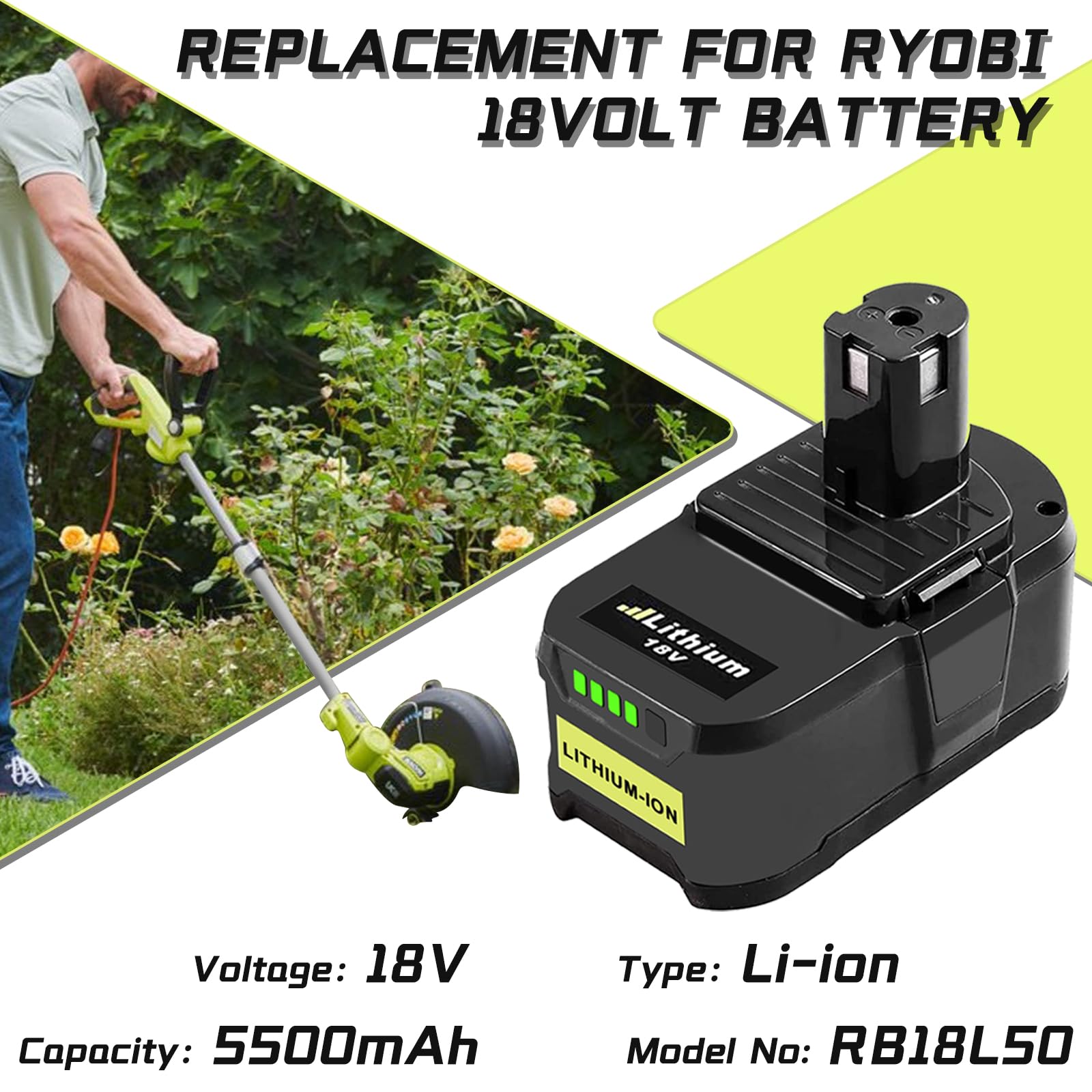 Fonction de protection multiple : Plusieurs protections intégrées contre les décharges excessives, les surcharges, les surintensités, les courts-circuits et la surchauffe interne garantissent une utilisation plus sûre de votre aspirateur L'indicateur de puissance peut afficher la puissance restante afin d'éviter une surcharge ou une décharge totale Ryobi 18v Oneplus Goodexo P108 Rechange Pour Ryobi Batterie 18V 3.0Ah P108 Li-ION Pour Ryobi RB18L50 RB18L40 RB18L25 BPL-18 (Noir Pack Ryobi Tension : 18V | Capacité : 3000mAh | Puissance:54Watt | Quantité : 2 pièces Le paquet contient : 2*Batterie de rechange pour Ryobi Batterie 18V 3., 0 1*manuel d'utilisation 2 × 5.5Ah 18V Lithium Pour Ryobi One+ Batterie P104 P108 P102 P103 P105 Batterie de rechange:pour Ryobi Batterie 18V P108, P107, P122, P104, P105, P102, P103, RB18L50, RB18L40, RB18L25, RB18L15, RB18L13 La batterie doit être complètement rechargée avant la première utilisation. 18V 4000M Ah Li-Ion P108 P 108 Batterie Rechargeable pour Ryobi...