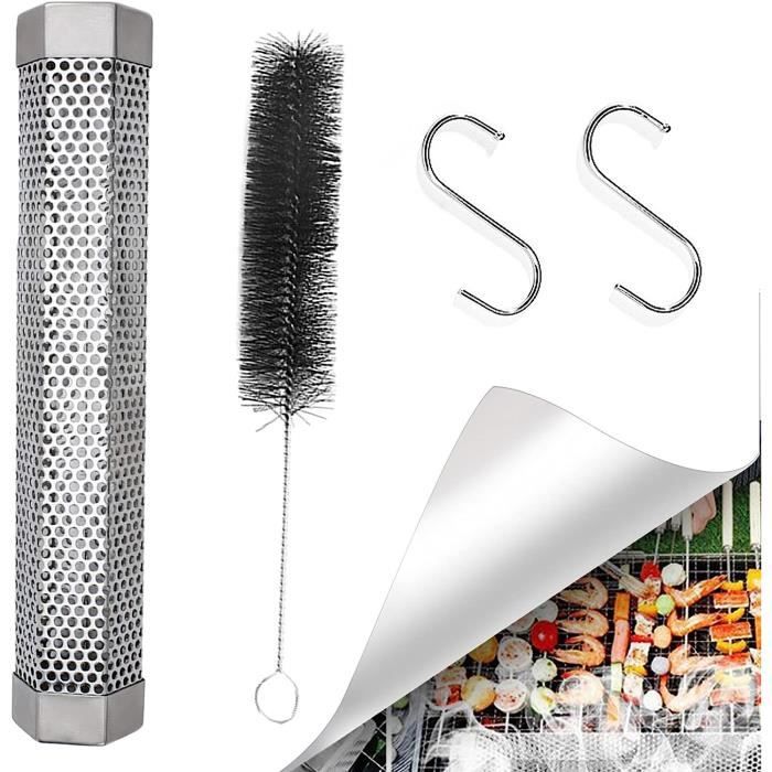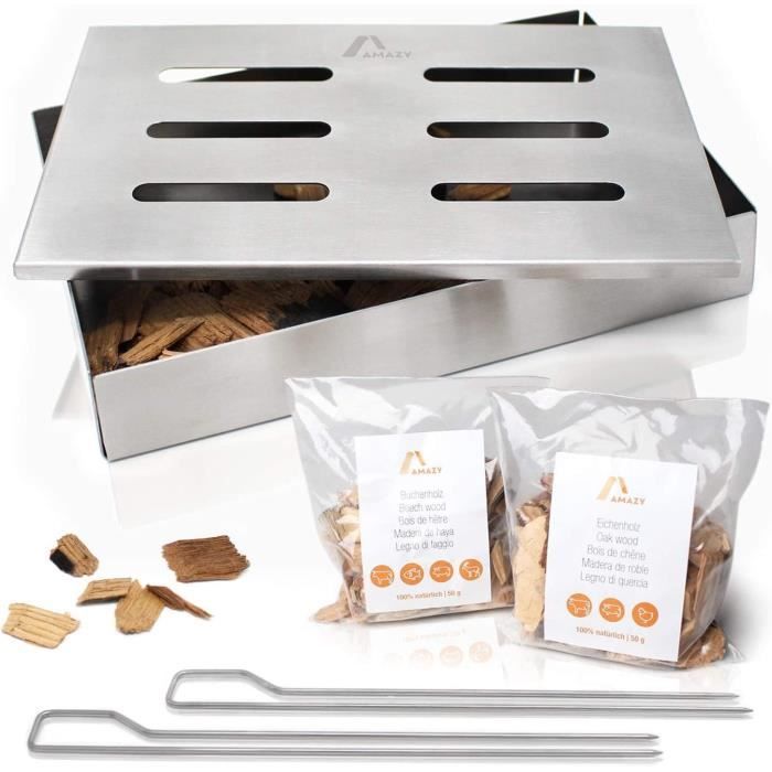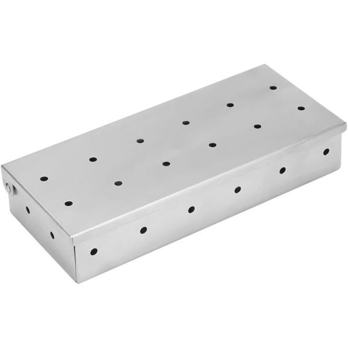Conçue pour le fumage à chaud, ce produit combine à la fois la chaleur et la fumée pour cuire et fumer de la viande, des légumes, du poisson, ou même du fromage pour accompagner vos raclettes l'hiver Le couvercle de notre boîte de fumage est facile à ouvrir et à fermer, avec des trous répartis uniformément sur les quatre côtés, ce qui garantit que vos aliments sont pleinement parfumés tout en empêchant les copeaux de bois de brûler. Accessoire Barbecue Universel Boîte à Fumage En Acier Inoxydable Pour Barbecue à Gaz Et Au Charbon De Accessoire Barbecue Fumé Caractéristiques: 1., Notre boîte à fumée est suffisamment longue pour s'adapter à un barbecue et produit une fumée uniforme., 2., La acier inoxydable fumé Boîte est dotée de trous sur le dessus et les côtés pour une circulation d'air maximale et un développement rapide de la fumée., 3., Bois de pommier: Parfait pour le bœuf, la volaille, le saumon, la truite et d'autres types de poissons., 4., Notre fumage en acier inoxydable est compatible avec tous les types de barbecues (charbon, gaz, électrique, etc. Pour la nettoyer, utilisez un détergent et placez la fumoir portable directement dans le lave-vaisselle, ce qui vous permettra de gagner du temps et de réduire vos efforts, et de profiter des avantages de la boîte à fumée pendant de nombreuses années ! Convient à Tous les Barbecues: Que vous utilisiez un barbecue à gaz, à charbon ou électrique, notre boîte à fumée est compatible avec tous les types de barbecues. Facile à utiliser : Il suffit de placer les copeaux de bois dans la boîte à fumer, de la placer sur le barbecue à gaz ou à charbon de bois, et de commencer à fumer facilement, sans opérations compliquées PETIT FUMOIR POUR BARBECUE, KIT FUMAGE 100% FRANCAIS & ECORESPONSABLE Répartition Uniforme de la Fumée: Une répartition uniforme et constante de la fumée est essentielle pendant la cuisson. Facile à Utiliser: Simple et pratique à utiliser, ouvrez la fumoir pour barbecue, placez les copeaux de bois de pommier à l'intérieur, placez-la sur le gril au-dessus du brûleur ou directement au-dessus du feu, et en quelques minutes, elle libérera une fumée uniforme et vous sentirez l'arôme du barbecue. ) et donne à vos plats grillés la meilleure saveur et le meilleur arôme fumés !