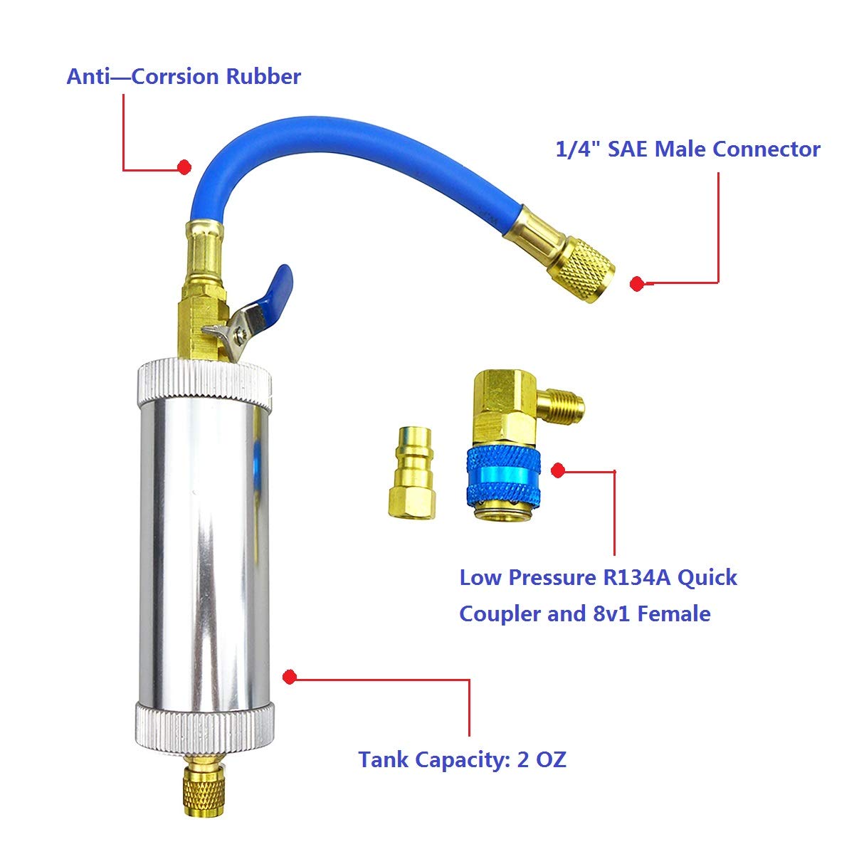 Il est conçu pour résister aux exigences de la climatisation automobile. CH-138 automobile adaptateur de climatisation adap... – Grandado Caractéristiques : *Pratique à utiliser : l'injecteur de teinture est conçu pour être utilisé avec un combiné d'instruments collecteur ou tout appareil de vidange ou de remplissage. Résistance à la haute pression : conçu pour résister aux exigences des systèmes de climatisation automobile, cet injecteur offre une résistance impressionnante à l'usure et à la haute pression, un fonctionnement sûr lors de l'utilisation. Design convivial : l'injecteur de teinture est conçu pour une intégration facile avec les groupes d'instruments collecteurs ou les appareils de remplissage, permettant l'ajout d'additifs essentiels tels que l'huile et les colorants sans effort. Couleur : argent, or, bleu. Kit complet d'injecteur d'huile : ce kit d'injecteur d'huile de compresseur de climatisation automobile comprend 1 injecteur et 1 valve d'arrêt, offrant tout ce dont vous avez besoin pour un transfert d'huile efficace sans enlever les composants. Ej.Life Climatisation de Voiture Réfrigérant Collecteur Kit Jauge... Il permet d'ajouter facilement des additifs de climatisation, tels que l'huile, les colorants, les bouchons de fuite. L'essentiel d'électrotechnique : BTS (Tout en fiches) eBook Injecteur Huile Climatisation Huiles, Colorants Et Plus Encore - L'essentiel Pour L'outil De Huile Pour Clim Auto Dimensions : 230 x 90 x 65 cm. * Longue durée de vie : ce produit est fabriqué avec des matériaux fiables et assure durabilité et longévité. Le tube de remplissage d'huile pure est conçu pour fournir une performance fiable. * Compatible avec la climatisation automobile R134A : spécialement conçu pour la climatisation automobile R134A, cet injecteur d'huile pour outil offre une assistance dans le transfert d'huile sans nécessiter un état de vide. Le pot d'huile peut être dévissé pour faciliter le remplissage d'huile dans la climatisation de la voiture.
