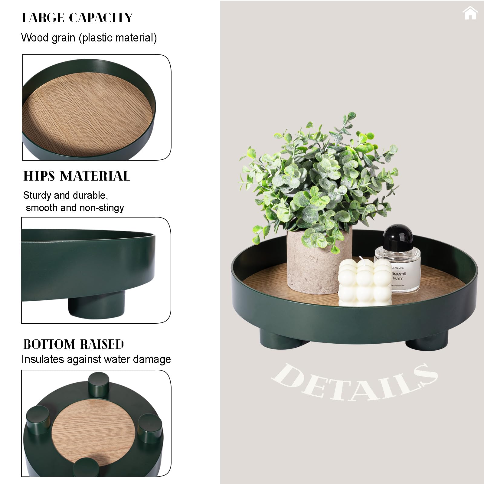 Utilisez ce panier pour garder vos petits objets organisés et réduire l'encombrement afin que vous puissiez facilement tout trouver. Simmer Stone Plateau rond en plastique décoratif avec poignées, moderne, pour vanité et service, pour ottoman, table basse, cuisine et salle de bain, taille 33 cm (vert émeraude bord blanc Spécifications : matière : plastique., Forme : ronde. Faites en sorte que vos zones en désordre soient belles et soignées. Idéal pour ranger vos affaires, léger et pratique. ★【FACILE À UTILISER】--La forme ronde s'intègre facilement dans une petite ou une grande table et est assez grande pour contenir décemment des décorations, des cosmétiques, de la nourriture et d'autres fournitures. ★【TAILLE DU PLATEAU】 - Nos plateaux sont ronds, 27 cm de diamètre * 4 cm de hauteur / 10,6 de diamètre x 1,6 de hauteur. TAILLE DU PLATEAU] - Nos plateaux sont ronds, 27 cm de diamètre * 4 cm de hauteur / 10,6 de diamètre x 1,6 de hauteur. Idéal pour ranger vos affaires, léger et pratique Couleurs : Ambre, Vert, Gris, Transparent., Diamètre : 10,6 pouces. Plateau De Service Moderne En Marbre Avec Poignées Accessoire Maison Blanc Et Dore Dimari 82987298 Plateau Rond Plastique Durable Déco Plateau Décoratif Rond De 10,6 Po Avec Poignées, Plateau De Service Moderne Pour Commodes Et Repose-pieds, Tables Basses, Cuisines Et Salles De Bain Pour Café, Petit-déjeuner, Boissons (dark Green Petit Coiffeuse ★ 【Élégant et classique】 - Ces plateaux sont audacieux et modernes, durables et prêts pour votre prochaine fête. - Coiffeuse pour ranger les bijoux raffinés, le maquillage, le parfum, les accessoires pour cheveux et le maquillage, etc. - Plateaux petit-déjeuner, en-cas, boissons, fruits, dosettes de café, bonbons, victimes, etc. - Plateau organisateur de bureau pour ranger le réveil, la télécommande, le téléphone, les clés, le portefeuille, les factures, les lettres, la papeterie, etc. ★【Matériau durable】--Fabriqué en plastique durable de haute qualité avec une épaisseur appropriée, une sensation de main délicate et lisse, une prise ferme, anti-éclaboussures, facile à transporter, facile à nettoyer avec un chiffon humide.