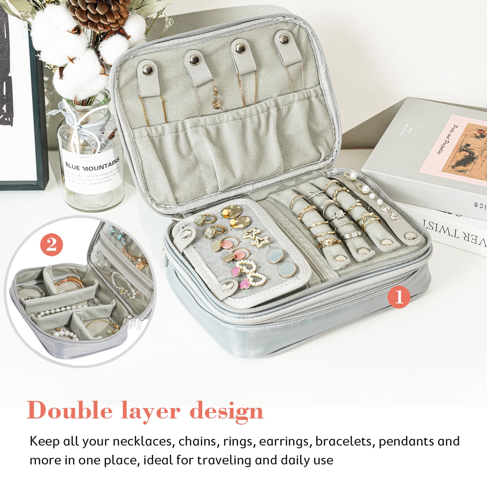 Le porte-bijoux de voyage en cuir Boite A Bijoux De Voyage Étui De Voyage En Cuir Synthétique Pour Montres, Motif Litchi, Accessoires De Présentation Bague D'oreille Petite boîte à bijoux : petite boîte cadeau élégante avec une poignée durable pour présenter vos bijoux, y compris colliers, bracelets, boucles d'oreilles, bagues, etc Boîte À Bijoux, Boîte À Bijoux, Boîte À Bijoux, Étui De Rangement En Cuir Pu Double Couche Pour...