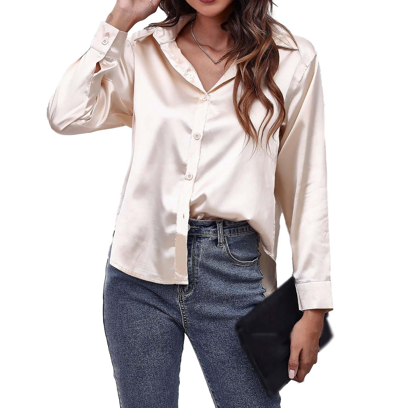 Comment bien choisir un chemisier à manches longues C'est un incontournable pour une garde-robe élégante pour femme. Blouse Travail Femme Chemisier En Satin Et Soie à Boutons Pour Femme - Blouse à Manches Longues Avec Col - Chemisier Doux Et élégant Pour Le Travail Au Bureau - Tunique Décontractée, Beige, S Chemisier Noir Femme Description du produit : Marques : chemises boutonnées en satin IBAOTORONI pour femmes à manches longues et col en soie chemisiers décontractés d'affaires boutonnés hauts de travail Catégorie : chemisiers boutonnés. Couleurs foncées séparément, la température maximale de lavage ne doit pas dépasser 40 °C. Mesures faites à la main, veuillez prévoir une marge de 3 cm, achetez selon les photos et le tableau des tailles dans la zone de description du produit (pas le tableau des tailles Amazon). Abaya couleur unie, tissu Saphyr (façon soie de Médine), col rond... Chemisiers En Satin pour Femmes Points forts du design : le style classique ne se démodera jamais, chemise boutonnée à manches longues, col à revers, classique solide, design unique de courbe de taille pour le corps des femmes. 【Chemisiers tendance】: le chemisier élégant en satin boutonné est adapté pour le travail, le bureau et au quotidien, peut être utilisé comme Saint-Valentin, fête de la déesse, fête des mères, meilleur cadeau pour maman, épouse, fille ou petite amie. Caractéristiques du tissu : fabriqué en satin de haute qualité, 97 % polyester + 3 % élasthanne, les tissus sont délicats, doux et lisses, doux pour la peau, toucher féminin confortable qui améliorera votre expérience de port.