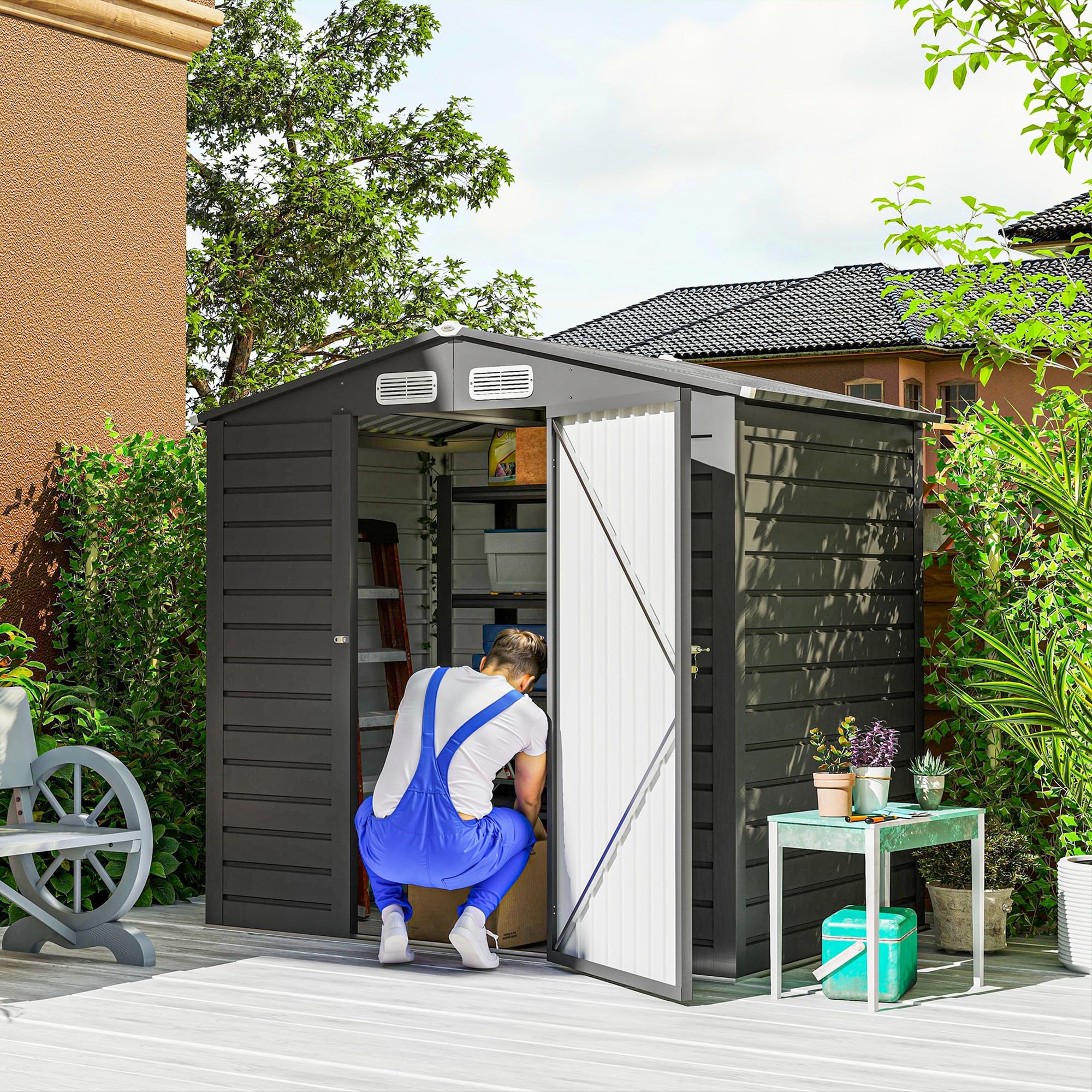 Portes doubles larges avec loquet, facilitant l'accès et sécurisant le contenu Transformez votre espace extérieur avec l'abri de jardin Outsunny. Grâce à sa structure en résine PP et acier galvanisé, cet abri résiste aux intempéries, offrant une robustesse durable. Évitez de monter cet abri par grand vent. Hauteur de l'avant-toit : 180/206 cm. Abri Résine PP Outsunny Abri De Jardin En Métal 2,27 M² Cabane De Jardin 190 X 131 X 188 Cm Cabanon Rangement Outils Avec Gants Inclus, Porte Verrouillable Et 2 Aérations (Gris Cabane Jardin Fenêtres évents Design moderne et épuré, en gris clair et foncé, embellit votre jardin Note : L'assemblage nécessite 2-3 personnes et dure environ 2 heures. Conception optimisée avec une surface de 3., 24㎡, idéale pour ranger outils et équipements PORTES DOUBLES ACCESSIBLES : Accédez aisément à votre cabane de jardin grâce à ses portes doubles et larges, sécurisées par un loquet robuste (cadenas non fourni), pour une protection accrue de vos biens. Abri de Jardin Extérieur Gris Anthracite - Polypropylène 151x146x200... Package includes: 1 x Abri de Jardin 1 x Manuel d'Assemblage Fenêtres transparentes et aérations latérales de la cabane de jardin assurent une lumière naturelle et une bonne ventilation CONÇU POUR DURER : Réalisé en résine PP légère et robuste, cet abri de jardin est consolidé avec des cadres en aluminium et acier galvanisé, garantissant une utilisation extérieure durable et efficace. Profitez d'un cabane de jardin exterieur spacieux pour organiser vos outils et vélos, même sous la pluie. Test : abri de jardin Outsunny 1, 14 m² verrouillable en plastique Abri Jardin 1m2 Gris Abri De Jardin Outsunny 1 M² - Acier Galvanisé, Porte Verrouillable Coffre De Jardin Exterieur Structure légère en plastique, facile à démonter et à déplacer par 2-3 personnes