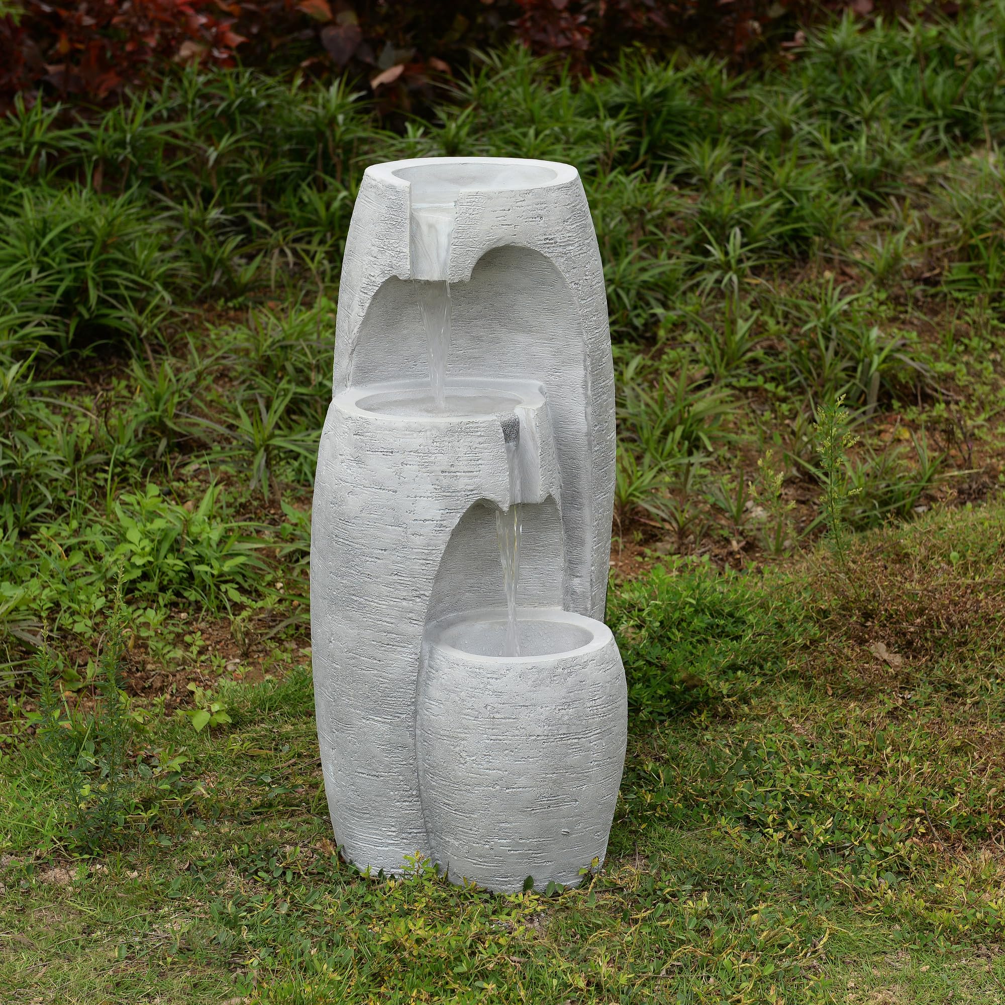 Parfaite pour créer une atmosphère relaxante dans votre jardin ou sur votre balcon, elle sublime vos moments de détente dès la tombée de la nuit. Avis sur la fontaine Teamson Home : design pierre à 3 niveaux Parfaite pour jardin, terrasse, balcon ou patio, elle apporte une ambiance relaxante grâce à sa lueur LED douce, sa finition pierre réaliste et son design en cascade. 71 cm (H) x 43 cm (L) x 39 cm (P) INSTALLATION : Grâce à son système électrique plug & play et à sa pompe réglable, son installation est rapide et ne nécessite aucun outil. MATÉRIAU : Fabriquée en résine durable et résistante aux intempéries, elle reste belle et fonctionnelle malgré les saisons. Elle supporte pluie, soleil et vent sans altération, offrant ainsi un élément de décoration fiable et robuste. Test de la fontaine cascade LED Teamson Home RJ-19048-EU Les LED intégrées offrent une lumière chaude le soir — idéale pour les soirées entre amis, les moments sur le porche ou sous les étoiles. Test Blumfeldt Cascada 2G : notre avis sur la fontaine de jardin 3 étages Fontaine Jardin 3 Niveaux LED Teamson Home Fontaine Moderne 3 Niveaux Cascade Exterieure LED Douce Reglable Urne Decorative Noir Fontaine Solaire Exterieure De Jardin STYLE : Son design à trois niveaux et sa finition noire effet pierre lui confèrent une allure moderne et élégante. Fonctionne avec une pompe électrique à débit réglable, pour personnaliser la vitesse et le son de l’eau selon vos envies. Aucune batterie ni installation complexe : branchez-la et profitez. Conçue en résine poly robuste, avec finition aspect pierre, elle résiste aux saisons et aux intempéries. Que vous cherchiez une fontaine pour jardin, terrasse ou balcon, cette pièce sculptée est idéale.