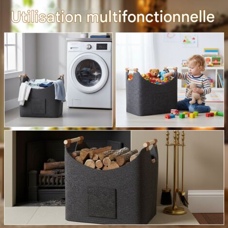 Nom : panier à bois de chauffage. Panier à bois de chauffage poignées de transport 78x54x34 cm - Bricolage Contrairement aux paniers en bois qui ne peuvent pas s'étirer, ils se dilatent pour contenir plus de bûches et offrent des choix de rangement optimaux en trois tailles différentes. Usage général : profitez d'une organisation améliorée avec ce panier à bois de chauffage en feutre qui permet de ranger des bûches pour le foyer, ainsi que des jouets, des couvertures, des magazines et des articles ménagers, offrant une capacité de stockage polyvalente Rangez facilement de petits objets comme des gants, des téléphones portables et des gadgets dans la poche latérale, gardant tout ce dont vous avez besoin à portée de main Rangement facile : rapidement pliable en quelques secondes, ce panier à bois de chauffage en feutre est pratique et prend très peu d'espace de stockage. Construit pour durer : fabriqué uniquement à partir du feutre épais le plus fin, ce panier à bois de chauffage affiche une bonne qualité et une bonne résilience. Porte bûches, sac à bûches en polyester épais 600D Espace de stockage inoccupé la conception pliable de ce panier à bois de chauffage en feutre est extrêmement pratique, offrant une solution peu encombrante pour organiser le bois de chauffage. Sac Feutre Pliable Panier Bûches Feutre CoatCool 55x42x30cm - Rangement Bois Chauffage Gris Sac Rangement Bois Cheminée Porte Buche Panier à Bois De Chauffage - Grand Panier En Feutre Avec Panier Feutre Extensible Poignées Bois Capacité étendue : grâce à sa plus grande taille, ce panier à bois de chauffage en feutre offre une capacité de stockage impressionnante. Avec la capacité de se replier sans effort en quelques secondes, il prend très peu d'espace de stockage lorsqu'il n'est pas utilisé, vous permettant ainsi d'optimiser votre espace de vie. Contrairement aux paniers en bois traditionnels, il peut contenir plus de bois de chauffage, offrant ainsi la solution de stockage idéale pour votre maison ou votre cheminée. Sa grande capacité peut contenir de nombreuses bûches et il peut être plié en quelques secondes pour un rangement facile. Fabriqué en feutre épaissi de haute qualité et équipé de deux poignées en bois robustes pour un transport facile Spécification.