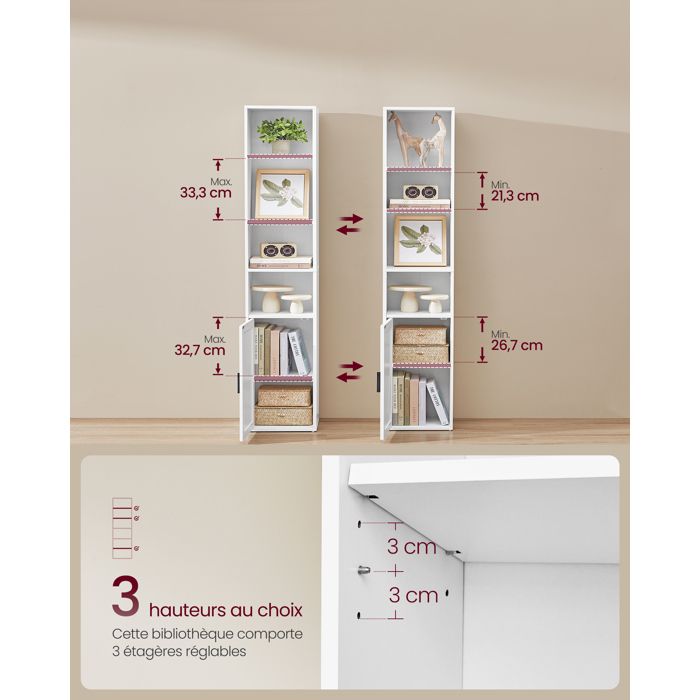 Design à double rangement : combine des étagères ouvertes et des portes d'armoire pour l'affichage rangement caché. Gardez les articles bien rangés mais accessibles Pratique et moderne : l'étagère en bois à 4 couches est fabriquée en panneaux de particules P2 de haute qualité et en panneaux de fibres de densité moyenne, avec une surface revêtue de mélamine, imperméable et résistante aux rayures. Bibliotheque Derriere Porte Bibliothèque Sur 4 Niveaux Avec étagères Réglables Blanc Nuage Custos M25138550 Livré à Plat Nordivale Bibliothèque blanche avec portes, présentoir, étagères autoportantes pour salon, chambre à coucher, bureau, 4 niveaux, 1 paquet Le produit est livré avec des instructions détaillées pour une installation facile. En plus des produits de haute qualité, nous offrons également un service client satisfaisant. Présentoir pin massif brut 2 portes 3 étagères - Bois clair/Beige... Vasagle étagère D'angle à 4 Niveaux, étagères De Rangement Autoportantes Bibliotheque En Bois Blanche Lbc42wt Pour Cuisine Chambre Salon Bureau Le portail et les méthodes de stockage ouvert peuvent répondre à vos besoins quotidiens Parfait pour présenter votre collection de livres, photos de famille ou décorations chéries La conception de l'étagère de style porte offre un espace de rangement propre et caché, et il y a également deux étagères ouvertes pour un accès facile aux articles.