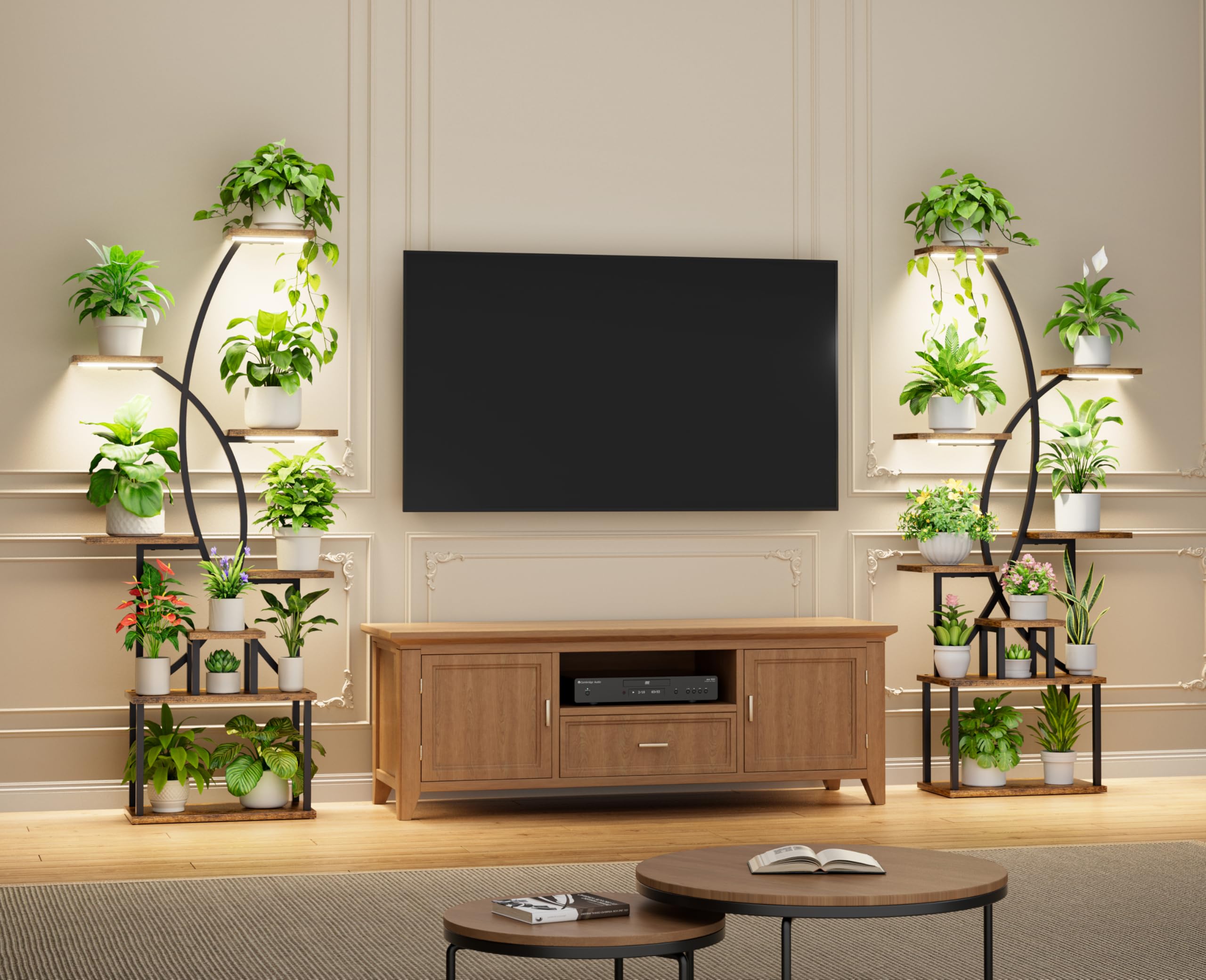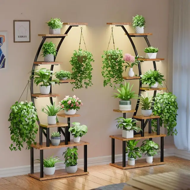 Convient pour les salons, chambres, couloirs, etc. Favorise la croissance des plantes d'intérieur : 2 lampes de croissance à spectre complet, qui peuvent ajuster différentes luminosités de lumière pour répondre aux besoins des plantes à différentes étapes, favorisant la croissance saine de vos plantes. Étagère stable et robuste : cette étagère pour plantes est conçue avec une structure de deux formes incurvées qui se croisent, ce qui est plus stable et ne tremblera pas. Le colis est équipé de tous les outils et pièces, y compris un tournevis et une petite clé, vous pouvez facilement le faire vous-même. Support pour plantes avec lampes de croissance : notre support de plantes est équipé d'une lampe de croissance à spectre complet pour fournir à vos plantes suffisamment de lumière, ce qui peut répondre aux conditions d'éclairage des différentes étapes de croissance. Lampe LED pour culture de plantes d'intérieur,... – Grandado Installation facile : pas d'opération compliquée, facile à installer. Nous vous fournissons des instructions claires et détaillées pour vous guider à chaque étape. Lampe LED pour culture de plantes d'intérieur,... – Grandado Support Plantes Intérieur Lampe Croissance CODACE Support Pour Plantes D'intérieur Avec Lampe De Croissance Décoration Intérieur Plantes En outre, ce support de plantes peut également être utilisé comme étagère d'affichage ou étagère de rangement pour exposer des livres, des photos, des objets de collection, des travaux manuels, etc. Gain de place : le support de plantes mesure 165,1 cm de haut et 80 cm de large, avec 8 supports de pots, ce qui offre assez d'espace pour les plantes sans prendre trop de place dans votre pièce. JUSTOGO Support pour plantes d'intérieur avec lampe de croissance, étagère haute à 8 niveaux pour plantes d'intérieur, grand support d'angle de 165,1 cm, support de fleurs incurvé en métal pour salon Convient pour différentes pièces intérieures. vous pouvez également configurer deux supports pour faire une décoration symétrique. JUSTOGO Support pour plantes d'intérieur avec lampe de croissance pour diplay et décoration de la maison Ce grand support de plantes combiné avec le design structurel incurvé et arqué est élégant et moderne, ce qui en fait un ajout unique à votre décoration d'intérieur. Nous fournissons également un ancrage mural, si vous avez des enfants ou des animaux domestiques, il peut empêcher l'étagère de basculer.