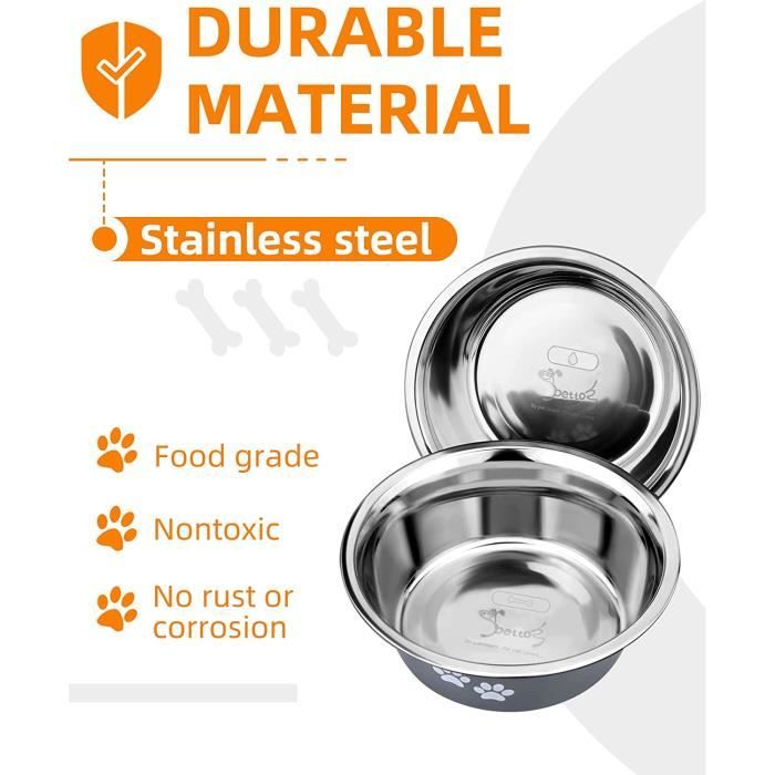 Gamelle Inox antidérapante pour Chiens et Chats | La toutouniere 【Stable et Silencieuse】Le gamelle pour chien fond antidérapant empêche la gamelle chien anti renversement de bouger ou de se renverser. Mangeoire Eau Croquettes Animaux 3PCS Gamelle Chat, Gamelles En Acier Inoxydable Pour Chat Et Chien Gamelle Pour Chat Description du produit TNSLAND 3PCS Gamelle Inox Chien et Chat 860ml Gamelle pour Chien, Gamelles Eau Chiens, Gamelles inox avec Fond Antidérapant en Silicone pour Petits,Moyen,Grands,Chiens et Chats Spécifications du produit : Nom : Gamelle Inox Chien et Chat Couleur : vert lac, gris et rose Matériau : acier inoxydable Dimensions : 17,5*13*5 cm, 860 ml -- Le produit comprend : 3 * gamelles pour chien -- Remarque : En raison des différences entre les écrans, il peut y avoir des différences de couleur. Convient comme mangeoirs et abreuvoirs pour chiens multifonctionnels 【Facile à Nettoyer et Empilable】La gamelle chien surface lisse en acier inoxydable se rince facilement Cette gamelle pour chien surélevée est légère, empilable et portable, idéale pour la maison ou les voyages Gamelle Surélevée pour Chien en Bambou et Acier, Support Surélevé... Gamelle inox - Belgique - Vous faites ça bien Parfaite comme gamelle pour chien ou chat pour croquettes, pâtée ou eau, elle garantit un repas sûr et sain 【Capacité Idéale】Avec 17,5 cm de diamètre et environ 860 ml, cette gamelle grand chien est adaptée aux chiens moyens/grands et aux chats. La couleur réelle dépend du produit réellement reçu.