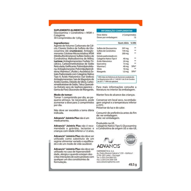 Advancis Jointrix Active Gel 100 mL | A TUA FARMÁCIA Advancis Jointrix Sos Amp 25x10ml - Nossa Farmácia - A sua farmácia Advancis Jointrix Plus 30 Comprimés