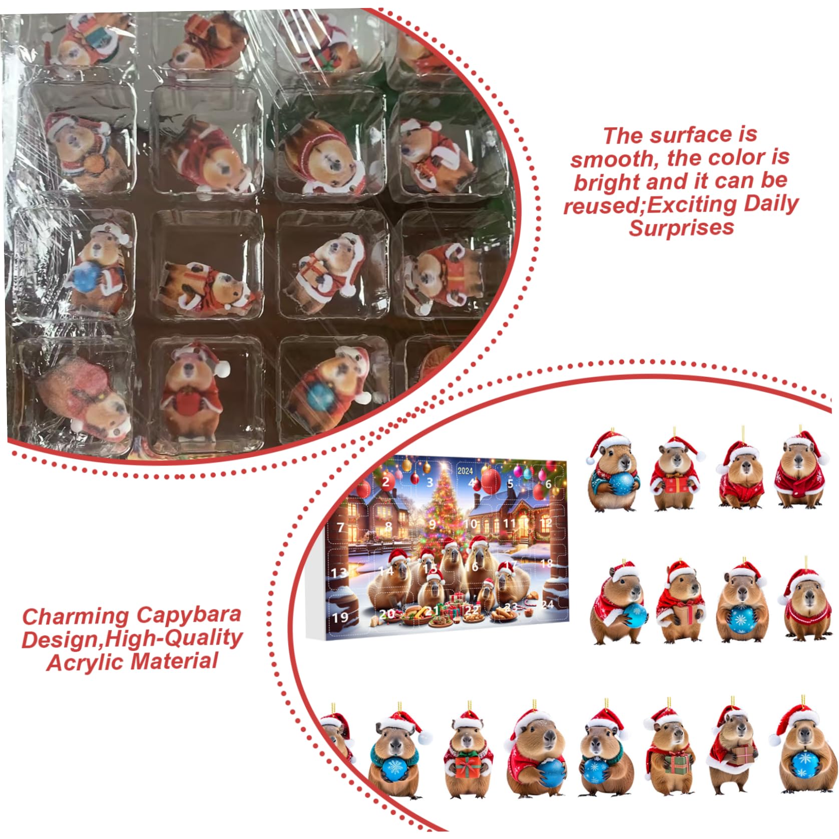 Vivez l'anticipation de la saison en décompteant de manière ludique Compte à rebours jusqu'à Noël : rehaussez vos célébrations de Noël avec ce calendrier de compte à rebours ornement capybara. Vivez l'anticipation de la saison en décompteant de manière ludique. Excellent matériau : le Capybara de l'Avent de Noël est Présentation du calendrier de compte à rebours Capybara Ornament, une breloque acrylique 2D distincte conçue pour apporter une festive dans votre maison. Excellent matériau : le Capybara de l'Avent de Noël est fabriqué à partir d'un matériau acrylique de haute qualité qui garantit une utilisation à long terme et résiste efficacement à la décoloration, ce qui en fait un choix fiable pour les décorations festives année après année. Ajoutez de l'enthousiasme à vos traditions de célébration Applications larges : Le Capybara de l'Avent de Noël est conçu pour être suspendu aux portes, aux rétroviseurs de voiture, aux , aux fenêtres ou même aux arbres de Noël, offrant des options de placement polyvalentes qui améliorent le décor festif. Idéale pour les réunions de famille, cette pièce sur le thème du capybara plaît aussi bien aux adultes qu'aux , ce qui en fait un ajout polyvalent à vos traditions des Fêtes. Calendrier l'Avent Capybara 2025 avec Compte Matériel: AcryliqueTaille du produit: environ 26x1 8cm/10,24x7,09 poucesListe de produits :1 boîte * Capybara Advent Christmas (comprend 24 ornements plats en acrylique)Remarques : En raison des différents paramètres d'éclairage et d'écran, la couleur du produit peut être légèrement différente de celle de l'image. Cet ornement sert à la fois de décoration charmante et de moyen créatif de compter à rebours jusqu'à des occasions spéciales comme les vacances ou Noël. Caractéristiques:Nom du produit : Capybara de l'Avent Noël. AVANT/APRÈS. Gaza: 3 satellite pour visualiser l'ampleur des... Calendrier De L'avent Ghibli Calendrier De L'Avent Capybara 2025 : 24 Décorations De Noël En Acrylique - Canada Pendentifs Acrylique Animaux Son design charmant lui permet de se démarquer tout en complétant divers styles décoratifs.
