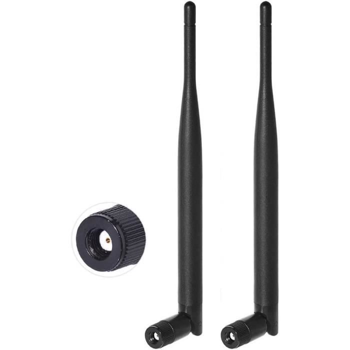 Compatible avec : routeur réseau sans fil, modem point d'accès WiFi AP, adaptateur USB WiFi, répéteur amplificateur de signal WiFi, rallonge de portée WiFi, adaptateur de carte réseau Mini PCI Express PCIE sans fil pour ordinateur de bureau Contenu : 2 antennes WiFi (29,5 cm) Bingfu Lot De 2 Antennes Mâles MIMO RP-SMA Double Bande WiFi 2,4 GHz 5 Ghz 3 Dbi Mimo Rp Sma Pour Routeur Wi Fi Amplificateur De Signal Sans Fil Carte Reseau Usb Adaptateur De Securite Ip Camera De Surveillance Video Caractéristiques : Gain de 8 dBi Gamme de fréquences WiFi double bande 2,4 GHz 5,8 GHz VSWR Polarisation linéaire verticale Impédance : 50 ohms. Compatible avec : caméra de sécurité IP WiFi ; enregistreur vidéo sans fil DVR ; caméra de recul pour camion, camping-car, van, trail, caméra de recul, caméra de recul, modem de passerelle IoT pour routeur industriel, terminal M2M, surveillance et contrôle à distance, vidéo sans fil, rallonge HDMI sans fil ; Compatible avec : caméra de recul Furrion Vision S, moniteur de caméra FPV 5,8 GHz 5,8 GHz, contrôleur quadricopètre de course FPV ; récepteur audio vidéo AV sans fil 5 GHz 5,8 GHz, extension HDMI Routeur WiFi Gigabit TP-Link AC1200 (Archer A6) - Routeur Internet sans... Antenne Wifi Bi-Bande 2,4 Ghz 5,8 Ghz 3Dbi Mimo Rp-Sma Mâle Câble WiFi double bande : 2,4 GHz (2400 - 2485 MHz), 5 GHz/5,8 GHz (5150 - 5850 MHz) ; gain : 3 dBi ; direction : omnidirectionnel ; connecteur d'antenne : connecteur mâle RP-SMA ; Compatible avec : routeur réseau sans fil, modem WiFi AP, adaptateur USB WiFi, adaptateur de carte réseau Mini PCI Express PCIE pour PC de bureau Température de fonctionnement : de -20 °C à 80 °C.
