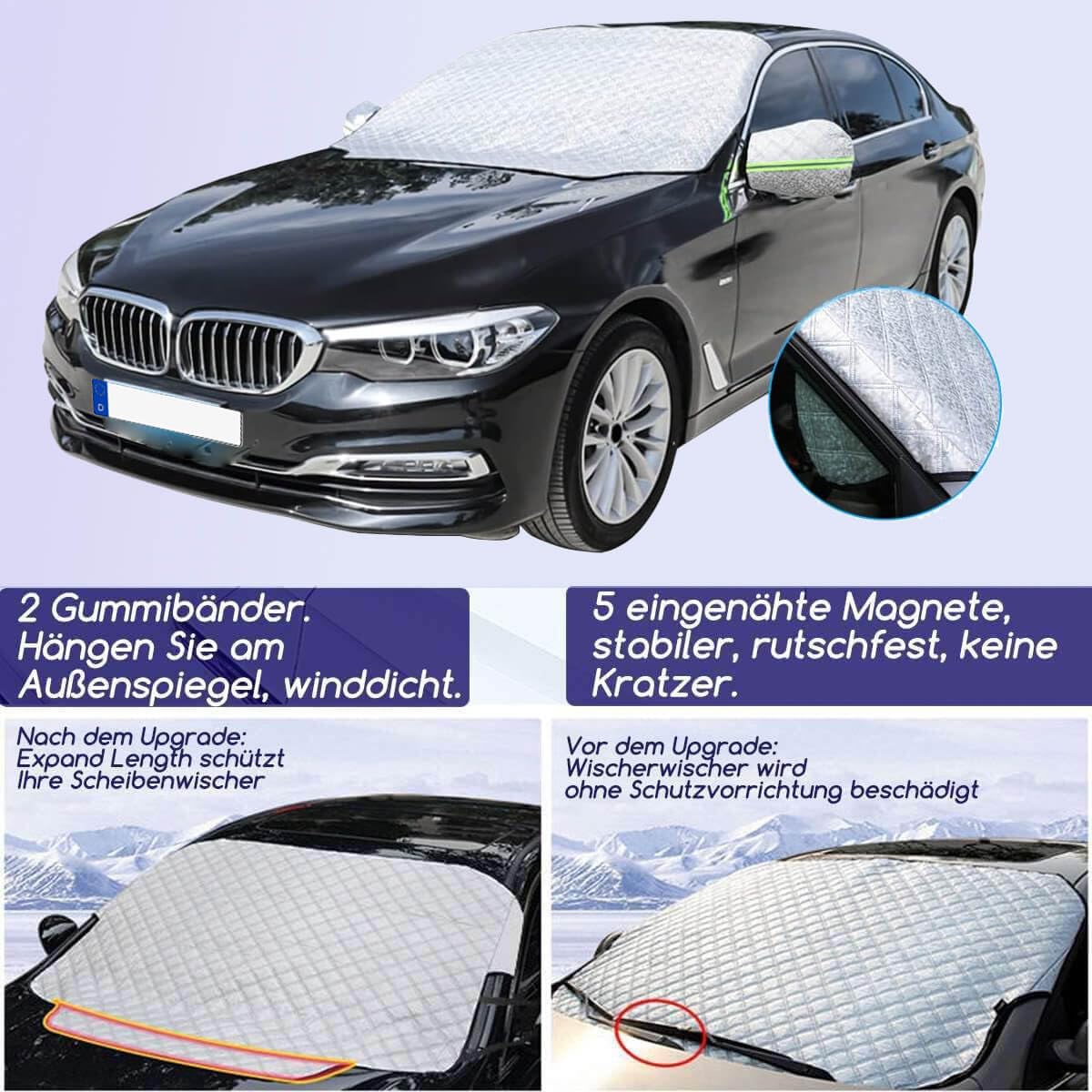 【Matériau Épais】Cette Couverture Pare Brise Voiture de est en papier d'aluminium PE + coton + tissu non tissé, le fond est très doux. pare soleil avant est de petite taille et très pratique à ranger,Lorsqu'il n'est pas utilisé,vous pouvez le plier et le ranger sur la banquette arrière,dans le coffre,dans un sac à dos,etc. 10 eilleures Offres couverture pare brise vw t5 - décebre 2024 Protection Pare Brise Hiver, Couverture Pare Brise Voiture Hiver, 9 Magnétique Bache Pare Brise 【Conception Réfléchissante】Une bande protege pare brise soleilt réfléchissante est ajoutée à la position du rétroviseur de recul de la couverture de neige de la voiture,qui joue un rôle réfléchissant la nuit pour empêcher votre voiture d'être heurtée ou rayée. En été, il empêche efficacement les rayons UV et la chaleur de pénétrer dans la voiture. 【Universel pour Toutes les Saisons】Ce pare-brise est polyvalent et peut protéger votre voiture tout au long de l'année. En hiver, il protège le pare-brise et les essuie-glaces du gel et de la glace. Pare Soleil Voiture Couverture Pare-Brise Voiture, Hivers Bache Pare Brise Fixation Magnétique Universelle Repliable Degivrage Pare Brise Une Protecteur de Poussière de Neige avec Crochets élastiques peut être accrochée dans le trou ou le pilier de la jante, peut rester bonne et sûre même par vent fort. Adaptée à la plupart des types de véhicule, elle peut être utilisée comme protège de pare-brise pour camions, SUV et voitures. Il est conseillé de mesurer la taille du pare-brise de votre voiture avant d'acheter.