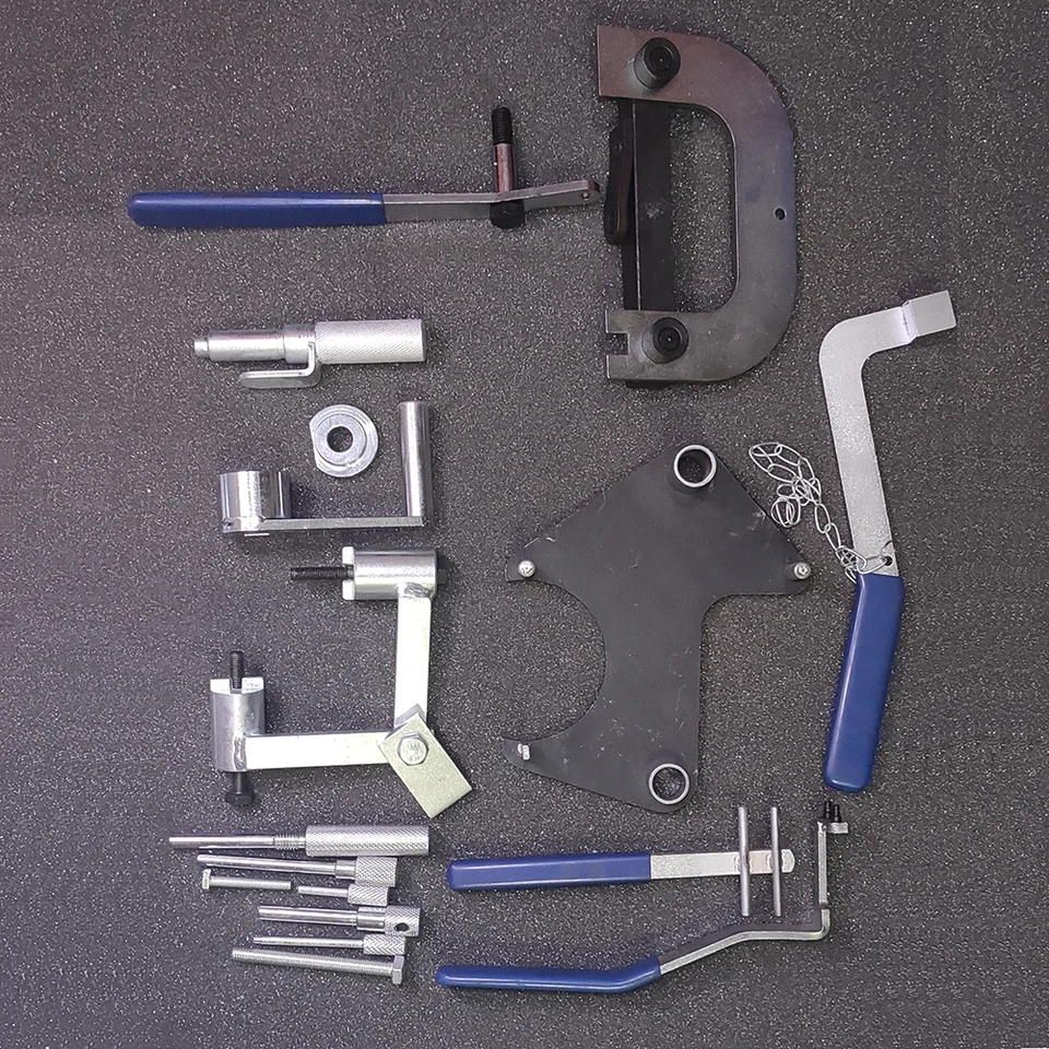 Fabriqué à partir d'acier poli qui est durci et trempé pour plus de durabilité. Comprend des goupilles de distribution, des goupilles de verrouillage de vilebrequin, un outil de réglage d'arbre à cames, un support de montage et un outil d'alignement de vitesse d'arbre à cames. Outils calage courroie distribution Volvo, Renault, Nissan et Opel - 1,2/1,4/1,6 (code moteur E5-E7F, E7J, K7M) par exemple Clio, Megane, Scenic, Kangoo. - 1,2 (code moteur D7F) par exemple Clio et Twingo. FreeTec Kit Calage Distribution Diesel, Outil Calage Convient pour une utilisation sur la plupart des voitures populaires avec moteurs à essence ou diesel de Renault Compatible avec les moteurs à essence suivants : Double moteur d'arbre à cames : 1., 2, 1., 4, 1., 6, 1., 8, 2., 0 16 V, 2., 5 20 V. Kit Outils Distribution Renault Bestsq Kit De Herramientas De Bloqueo De Sincronización Del Motor Para Renault Clio Laguna Megane 14 16 16v Goupilles Vilebrequin Arbre à Cames