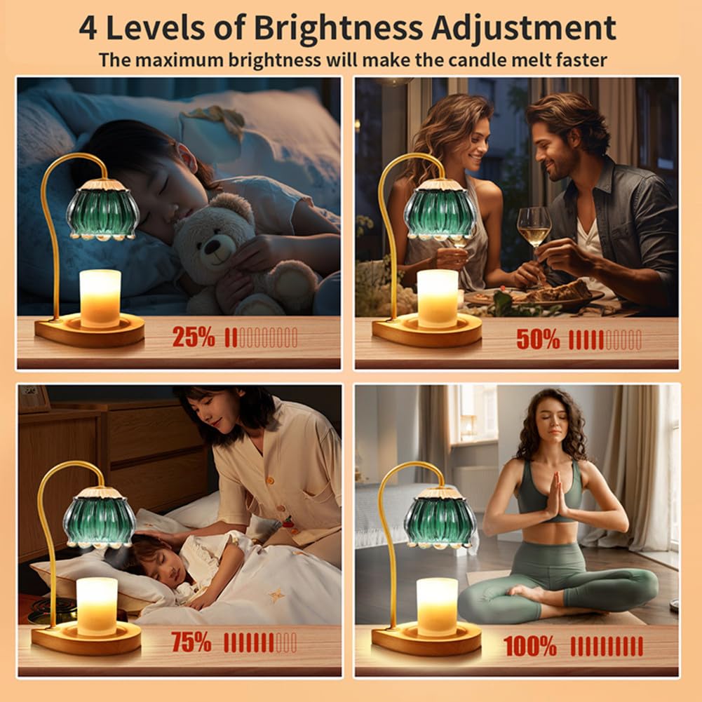 Grâce à son design sophistiqué et moderne, il est à la fois fonctionnel et décoratif, apportant chaleur et romantisme à n'importe quel espace. Lampes à Bougie Lampe Chauffe Bougie, Candle Warmer Lamp Avec Minuterie Et Variateur Lampe Bougie Electrique Candle Warmer Vintage Pour Parfumees Transparence 99022648 Chauffage Bougie Caractéristiques de la Lampe Chauffe Bougie : Source d'alimentation : Câble électrique Fonction : Minuterie, 4 Luminosités Variables Inclus dans le paquet : 1 Lampe Chauffe Bougie ; 2 ampoules halogènes GU 10., Rappel : - Veuillez ne pas allumer de bougies lorsque vous utilisez la lampe et le chauffe bougie. Design Unique : Cette lampe chauffe bougie est un vrai bijou d'art, les socles en bois massif de qualité supérieure assortis au bras de lampe en or de haute qualité sont conçus pour ajouter une touche de sophistication et d'élégance à n'importe quel espace. Cette lampe chauffe bougie pratique et élégante est un excellent cadeau pour la famille et les amis à Noël, lors d'anniversaires et d'autres fêtes importantes. Lampe Chauffe-Bougie Chaleureuse – Maison-Génie - Veuillez éteindre l'appareil avant de changer l'ampoule. L'abat-jour en verre vert associe des éléments classiques et modernes pour attirer l'attention dans votre maison, de jour comme de nuit., our comme de nuit. Décoration Parfaite de la Maison : Il s'agit non seulement d'une lampe chauffe bougie pratique, mais également d'une lampe parfumée esthétique qui se marie très bien avec un style moderne, rétro ou vintage, créant une ambiance chaleureuse dans la chambre à coucher, le salon, le bureau, la cuisine et bien plus encore. Pour éviter les brûlures, retirez l'ampoule et remplacez-la par une neuve après qu'elle ait refroidi. Cette lampe est une excellente décoration pour le bureau, la chambre à coucher ou le salon et est idéale pour le yoga, le travail, la lecture, le sommeil et d'autres activités relaxantes. - Veuillez tenir la lampe fond bougie hors de portée des enfants et des animaux domestiques. D-Work Lampe Chauffante Bougie Parfumée avec Variateur 35W