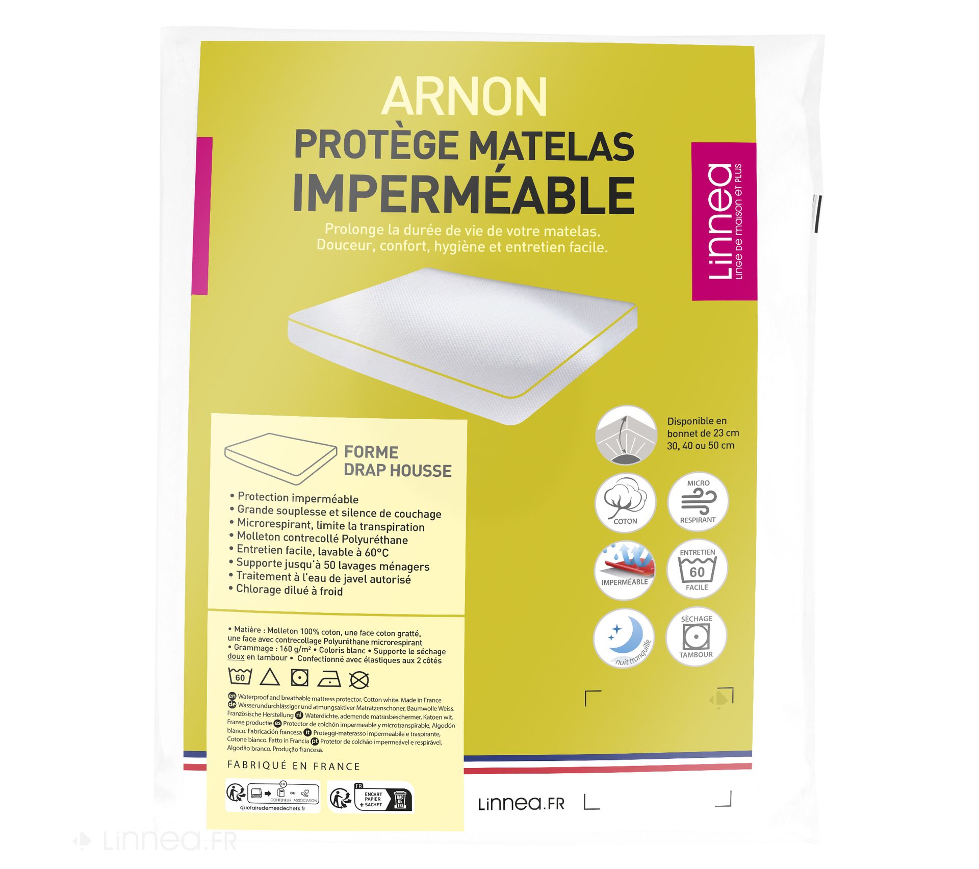 Protege Matelas 140x70 Produit Literie Français Protège Matelas Imperméable 180x200 Bonnet 40cm - Molleton Coton Contrecollé PU - Fabriqué En France - Arnon Protection Matelas France Protege Matelas 70x190 Le protège-matelas ARNON est fabriqué en France. ✔️ BONNET AJUSTE : bonnet 30 cm idéal pour matelas jusqu'à 25 cm d'épaisseur. Finition tête et pied entièrement élastiqués, Coloris blanc, Fabriqué en France Résiste à l'usage fréquent sans altération des propriétés. Sans traitement chimique, pour un sommeil sain. ✔️ FABRICATION FRANCAISE PREMIUM : confectionné en France dans les Vosges et certifié Vosges Terre Textile. ✔️ ENTRETIEN OPTIMAL : lavable à 60°C et repassage à 110°C maximum sans vapeur. Un protège-matelas imperméable et respirant, apporte douceur, confort et hygiène. Protège matelas, en molleton, absorbant, en coton, imperméable, bonnet L'alèse ARNON forme drap housse sera l'accessoire idéal pour votre literie. Bonnet ajusté : bonnet 30 cm idéal pour matelas jusqu'à 25 cm d'épaisseur. Excellente tenue, même après plusieurs nuits de mouvement. Entretien optimal : lavable à 60°C et repassage à 110°C maximum sans vapeur. Résiste à l’usage fréquent sans altération des propriétés Film polyuréthane extrêmement souple, résistant et micro-respirant, limitant ainsi la transpiration et la sensation de chaud lorsque l'on dort dessus Un molleton doux pour votre confort, qui respecte les peaux les plus sensibles. Excellente tenue, même après plusieurs nuits de mouvement. Finition bonnet bande molleton non imperméable Une face molleton gratté et sous-face polyuréthane microrespirant Il supporte jusqu'à 50 lavages ménagers et isole des acariens, mais ce n'est pas un traitement chimique contre les acariens. Le protège-matelas imperméable ARNON de 150x220 cm avec bonnet de 30 cm est conçu pour un confort optimal. Fabriqué en France, il est en molleton 100% coton contrecollé polyuréthane, offrant une protection silencieuse et microrespirante Grammage, plateau : 160 g/m2, Dimensions 150x220 cm ✔️ PROTEGE-MATELAS IMPERMEABLE 150X220 : collection ARNON en forme drap housse, idéale pour protéger votre literie contre l'humidité sans négliger le confort.