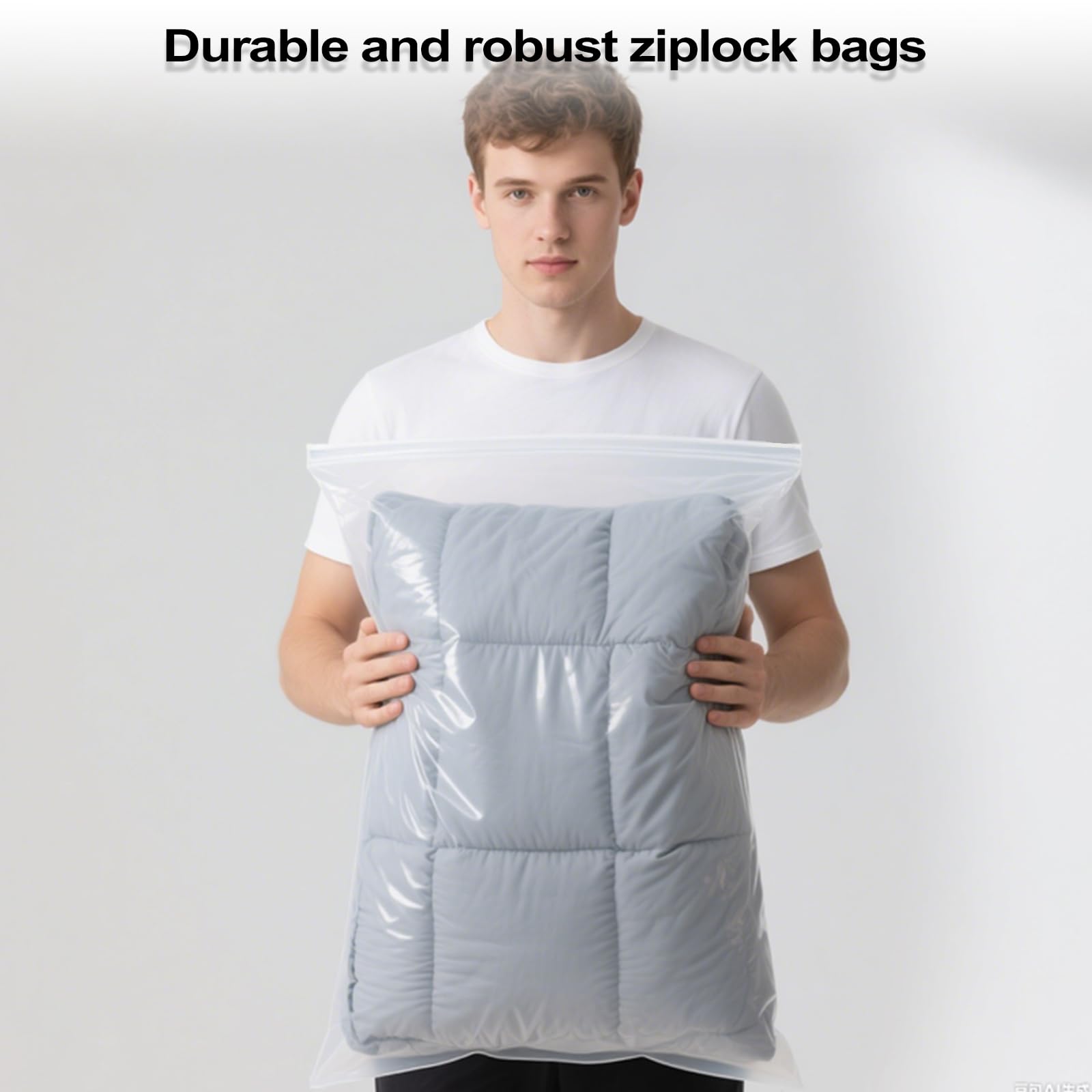 Vous pouvez ouvrir et refermer les sacs en toute simplicité tout en gardant vos affaires bien protégées contre les éclaboussures, les acariens et les odeurs. Idéals pour protéger vos textiles de la poussière, de l’humidité et de l’usure, ils remplacent efficacement les sacs sous vide sans nécessiter d’équipement. Sac PE épais 60x80 Cm 40x60 Cm VOSSOT 5PCS Lot Sacs De Rangement Ziplock Refermables, 3 Grands 60×80 Cm + 2 Moyens 40×60 Cm Sacs Plastique PE Épais Transparent Imperméables Réutilisables Pour Vêtements, Couettes, Literie, Voyage Sacs Imperméables Rangement Saisonnier Sacs en plastique transparents refermables, sac scellé, sac de 【Parfaitement Transparents Pour un Repérage Immédiat】Grâce à leur design transparent haute clarté, ces sacs permettent d’identifier en un clin d’œil le contenu sans les ouvrir. C’est un indispensable pour les familles organisées et les voyageurs réguliers. Fini le désordre dans les valises, placards ou armoires vous visualisez vos affaires immédiatement, ce qui vous fait gagner un temps précieux lors de vos déplacements ou changements de saison. 【Utilisation Polyvalente à la Maison et en Déplacement】Ces sacs réutilisables et pliables sont conçus pour répondre à tous les besoins voyage, rangement dans un camping-car, valise, penderie, sous le lit ou même dans la salle de bain. Lot De 50 Sacs Refermables En Aluminium Avec Fermeture Éclair - Anti... 【Fermeture Zip Hermétique et Facile à Manipuler】Le système de fermeture à glissière renforcée garantit une étanchéité optimale. Pour toute question ou insatisfaction concernant nos produits, n'hésitez pas à nous contacter dans les plus brefs délais. 【Capacité de Rangement Etendue Pour Tous vos Besoins】Ce lot inclut 3 grands sacs 60×80 cm et 2 moyens sacs 40×60 cm, parfaits pour trier, ranger ou transporter vos vêtements volumineux, couettes, draps ou serviettes en toute saison.