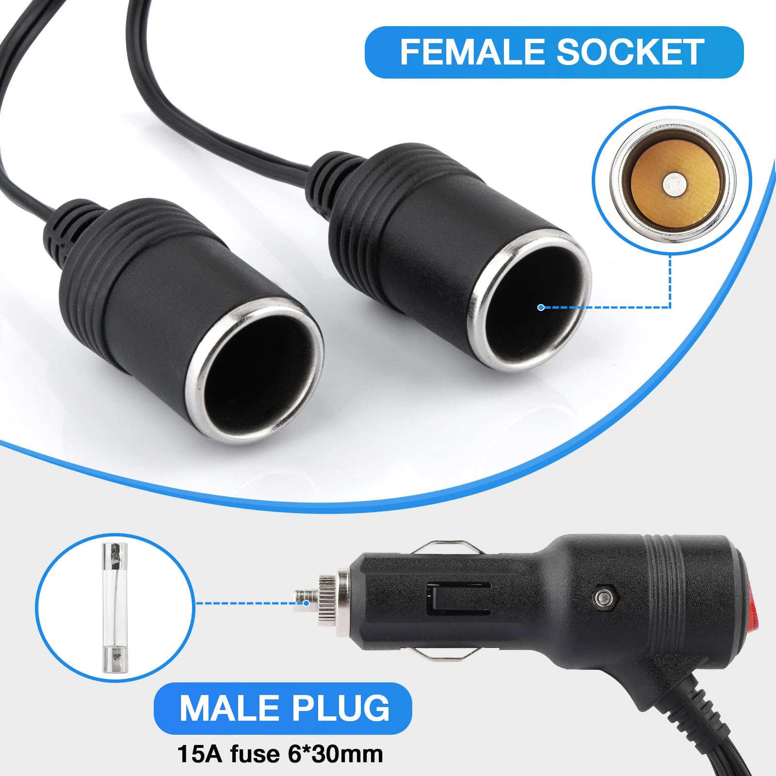 Par exemple, une caméra de recul et un appareil de navigation GPS. Multiprise Allume Cigare 12v Rallonge Allume-Cigare Voiture 2 Ports - Double Prise 12V/24V Avec Interrupteurs LED Et Câble 1m - Parfait Pour Chargeurs USB Et Appareils Auto Adaptateur 12V Allume-cigare 12 V/24 V universel : matériau haute température, conductivité stable, durable. MatéRiaux Haut De Gamme: Le câble d'extension automobile DC 12V/24V pour allume-cigare, Idéal pour les véhicules avec une prise de charge allume-cigare. La prise est équipée d'un voyant lumineux qui vous permet de vérifier à tout moment l'état de la connexion et de la localiser facilement, même dans l'obscurité. La tension de fonctionnement est comprise entre 12 V et 24 V, assurant une alimentation stable à votre appareil. Interrupteur marche/arrêt + LED rouge : économise l’énergie et indique l’état en temps réel. L'affichage LED rouge signale l'état de fonctionnement. Cela permet d'utiliser plusieurs appareils en même temps sans avoir à les débrancher et les rebrancher fréquemment. Plug & play : branchez et utilisez, voyant LED pour localiser la prise dans l’obscurité. Double Prise de Courant Pour Voiture: La double prise allume-cigare dispose de deux sorties d'alimentation, permettant le chargement ou l'alimentation simultanée de plusieurs appareils. Prise allume-cigare double adaptée aux pompes à pneus, ventilateurs, lumières, purificateurs d'air de voiture, camping-car. gunhunt Pack-1 Rallonge allume-cigare de voiture, adaptateur Large compatibilité : voiture, camping-car, fourgon, bateau – tous appareils 12 V/24 V.