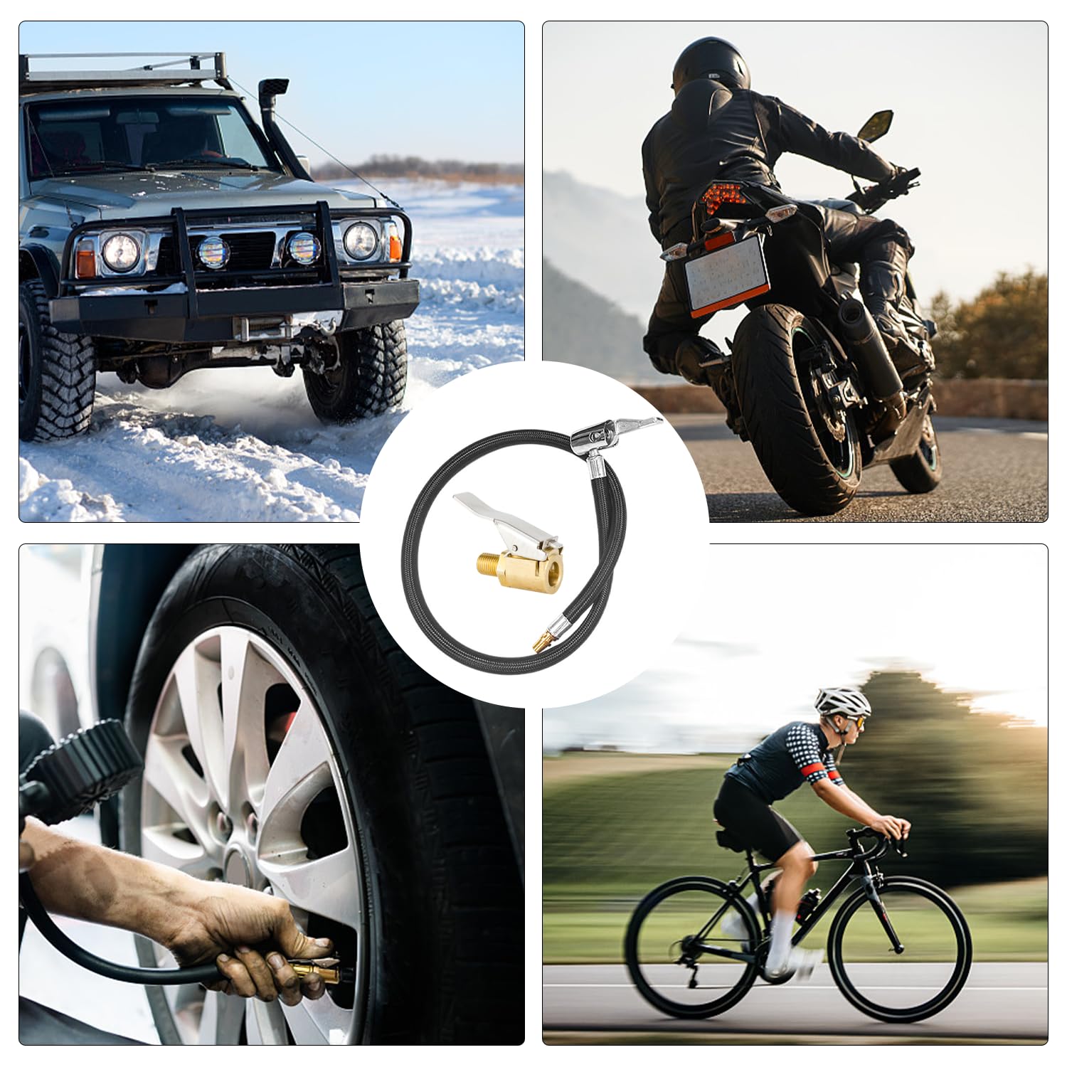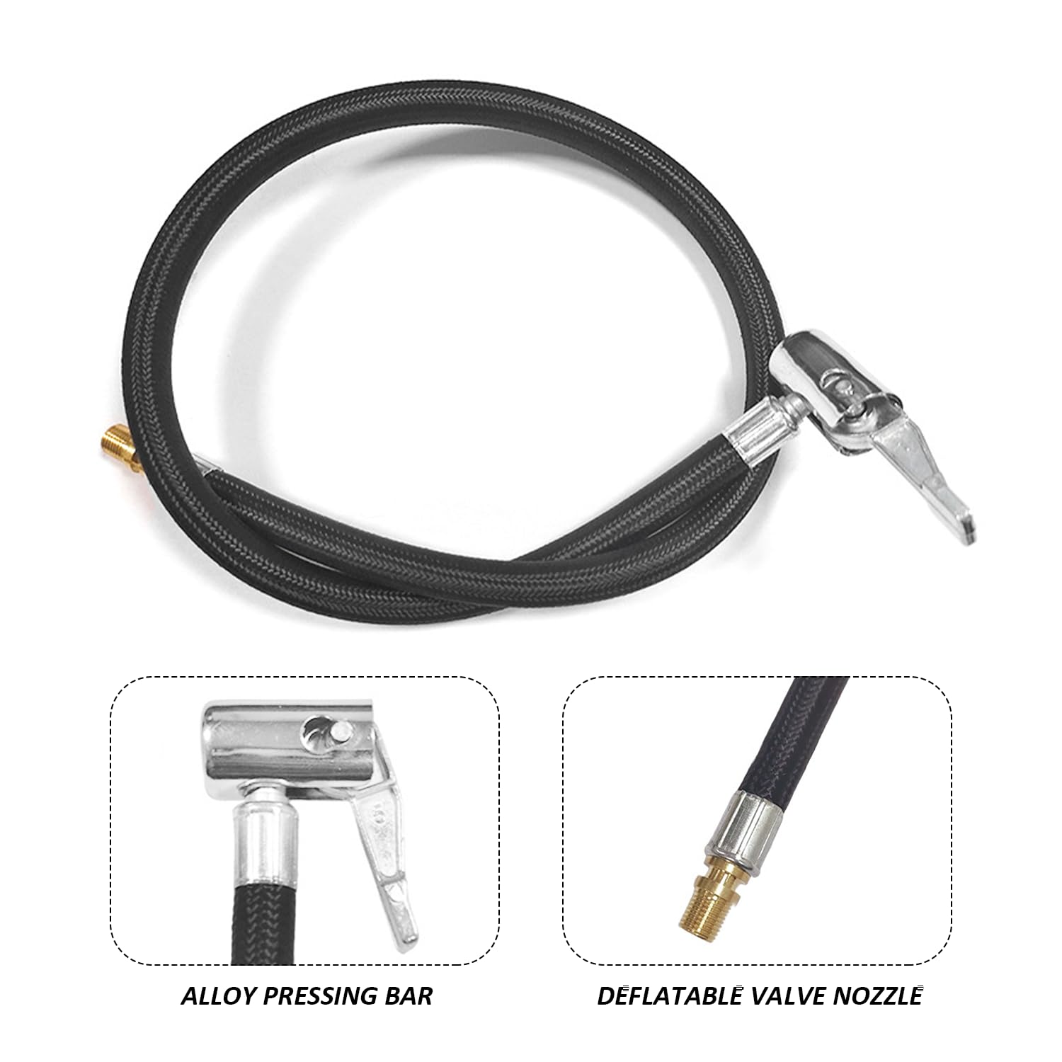 Les couleurs vives facilitent l'identification rapide dans la boîte à outils et rendent votre processus de gonflage plus efficace., 4., Taille précise et forte adaptabilité : la taille du tube de gonflage est de 7,6 mm à 500 mm et convient à la plupart des voitures, vélos et autres équipements de gonflage de pneus. Buse De Gonflage De Voiture, 5 Pièces 2 En 1 Buse De Pompe À Air De Outils pour valves de pneus: NYGGTYK 1 tuyau de gonflage, 2 adaptateurs de pompe à air, adaptateur de pompe à air, adaptateur de valve de voiture, connecteur rapide filetage fin, tuyau articulé à levier, indispensable pour le | Auto-moto Fonctionnalités: Le kit d'extension de valve est efficace, durable, adaptable et se gonfle rapidement, ce qui rend le processus de gonflage des pneus plus facile et plus pratique., 1., Détails du produit : vous recevrez un kit de produit qui comprend un tuyau de gonflage de 500 mm de long et 2 adaptateurs de pompe à air (18 x 50 mm). Dimensions : 18 x 50 mm Matériel: alliage Quantité : 2 pièces., Couleur : cuivre. 5 adaptateurs pour pompe à air | Matelas / Bateaux La quantité est suffisante pour répondre à vos besoins de gonflage simultané de plusieurs pneus., 2., Matériau du produit : notre tuyau de gonflage de pneu est fabriqué en caoutchouc et en cuivre de haute qualité pour assurer une bonne élasticité et une bonne résistance à la corrosion pendant l'utilisation, prolongeant ainsi la durée de vie., 3., Couleurs vives, facile à identifier : le tuyau de gonflage est de couleur noire et l'adaptateur est de couleur cuivre. Long tuyau gonflable., Dimensions : 7,6 x 500 mm. Embout Gonflage Pneu Velo Valve Adapter Adaptateur Tuyau Pompe à Air Fanttik - 50cm Pour Valves Schrader Et Presta, Connexion Filetée Gonfleur Universel Fanttik Accessoire Pompe à Air