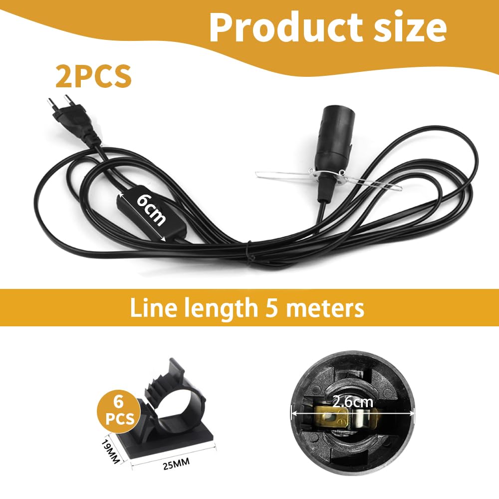 Lot de 4 douilles E14 avec interrupteur et prise européenne, douille de lampe E14 avec câble 3 m, interrupteur à vis, adaptateur de prise, support de lampe pour cuisine, salon, bureau, chambre La douille E14 a une longueur de câble de 1,8 m, ce qui rend 1,8 m Câbles pour Lampe de Sel suffisant pour la plupart des lustres. Câble D'alimentation Lampe Sel Noir 2x Câble électrique Pour Lampe - Câble Avec Douille E27 Et Bague De Fixation - Monture De Suspension Pour Luminaire Plafond Noir 81081737 Câbles Douille E14 1,8 M ✈Quantité de produit: 6 pièces ✈Dimensions du produit : Longueur du câble 1,8 m ✈Couleur du produit: noir Contenu de l'emballage du produit : ✈6 * 1,8 M Câbles Pour Lampe De Sel 【LARGE GAMME D'APPLICATIONS】1,8 m Câbles pour Lampe de Sel peut être utilisé de manière flexible pour l'installation d'éclairage dans la cuisine, le salon ou la salle d'étude. Le support de lampe et le fil noirs sont plus pratiques pour s'adapter à différents styles de maison. ACHNC Lape en Papier, Lape de Chevet Chabre en Papier de Riz Rétro... Luminaire suspendu douille x3 avec circuit boîtier noir avec câble 3,5m vis anneau fileté 【SÛR ET DURABLE】1,8 m Câbles pour Lampe de Sel est recouvert de matériaux ignifuges pour garantir une utilisation sûre et en toute confiance. Avec le cordon d'alimentation, vous n'avez plus besoin de compter sur des luminaires préinstallés . 【GRANDE TAILLE】La longueur totale du 1,8 m Câbles pour Lampe de Sel est de 1,8 m.