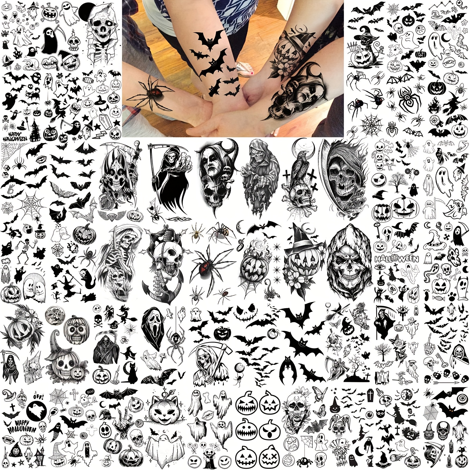 Il est également déconseillé aux enfants de moins de 3 ans. 10 feuilles de tatouage temporaire de toile d'araignée réaliste - autocollants d'art corporel 3d pour halloween, faux toiles d'araignée pour , application et retrait faciles, parfait pour les fêtes d'halloween et les 10 paires de tatouages temporaires yeux noirs Halloween (12 × 6 cm / 4,72 × 2,36 pouces) 【Facile à utiliser et à retirer】L'application de ces autocollants de maquillage de mascarade est un jeu d'enfant. Ils sont conçus pour offrir un confort optimal sans causer aucune gêne. Collez ces tatouages araignées en trois dimensions et affichez votre personnalité ! 【Matériau doux pour la peau】 Fabriqués à partir de matériaux de haute qualité, ces tatouages faciaux d'Halloween sont sans danger et doux pour la peau, adaptés aux femmes et aux hommes de tous âges. 10 Feuilles Tatouages Temporaires de la -Valentin et Bandeau en Forme 2) Placez le tatouage temporaire face vers le bas sur votre peau. 【Populaires auprès des fans et des passionnés】Adoptés par les fans d'horreur et les passionnés de cosplay et d'événements à thème, ces tatouages sont appréciés pour leur authenticité et leur capacité à améliorer l'expérience immersive de la représentation de personnages ou de thèmes préférés. 10 feuilles de tatouages de autocollants de tatouages temporaires... 【Pack économique】Ce pack comprend 10 paires d'autocollants tatouages pour les yeux noirs et 10 feuilles de tatouages toile d'araignée présentant une variété de motifs captivants dans un style classique, glamour noir et coloré, parfaits pour ajouter une touche d'élégance à votre look d'Halloween. Si c'est le cas, retirez délicatement le film protecteur. Sinon, appuyez dessus et humidifiez-le à nouveau. Méthode de retrait 1., Essuyez le tatouage temporaire avec de l'alcool, du démaquillant, de la crème démaquillante ou de l'huile pour bébé et attendez 10 secondes., 2., Frottez doucement et à plusieurs reprises jusqu'à ce que le tatouage disparaisse ou frottez-le avec de l'eau et du savon. Attention Ne pas utiliser sur une peau sensible, près des yeux ou sur des personnes allergiques aux adhésifs.