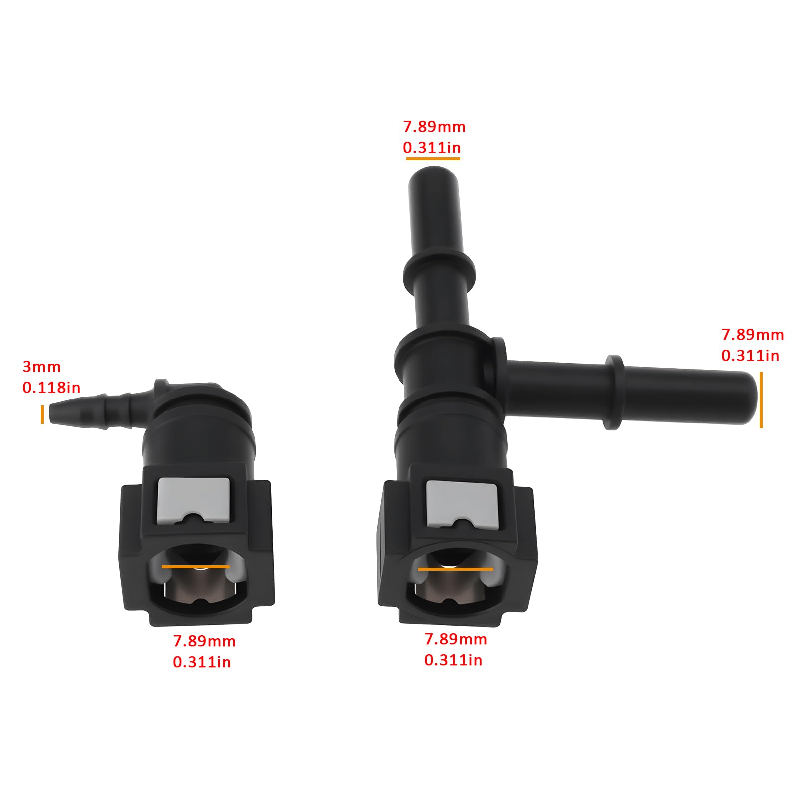 Connecteur en T pour tuyau de carburant de voiture, connecteur à prise rapide, raccord de tuyau à dégagement rapide, adaptateur de tuyau de ligne d'huile en nylon, bons bancs, 9.49 Raccord Tuyau Carburant ESTINK Raccord En T Du Capteur De Pression De Carburant Adaptateur De Raccord En T Pour Capteur Coude 90° Carburant Liste des produits : Le produit comprend un total de 1 connecteur à trois voies de type T, 1 connecteur cannelé à 90°, qui peut répondre complètement à vos besoins d'utilisation quotidienne et de remplacement. Item Specifications Diamètre du connecteur:7,89 mm Matériau:Plastique Couleur:Noir Package 1 connecteur à trois voies de type T 1 connecteur cannelé à 90° Compatibilité : Ce connecteur de conduite de carburant idéal convient à une grande variété de véhicules et permet de raccorder ou de déconnecter des conduites de carburant, des conduites de retour et des conduites de carburant non pressurisées. Pince de raccord de conduite de carburant avec extension flexible Compatible avec Eberspacher les chauffages diesel , Compatible avec Webasto, Compatible avec Planar, Compatible avec Vesta, Compatible avec Vivaro, Compatible avec Primastar, Compatible avec Trafic et autres. YUA Akozon Connecteur de tuyau de carburant Raccord de conduite de... Matériau du produit : Ce produit est spécialement conçu et fabriqué en plastique, qui a une durée de vie élevée et n'est pas facile à endommager. Dimensions du produit : La taille de l'interface interne du connecteur en T est de 7,89 mm, celle des deux connecteurs est de 7,89 mm, celle du connecteur cannelé à 90 degrés est de 3 mm et la taille de l'interface interne est de 7,89 mm.
