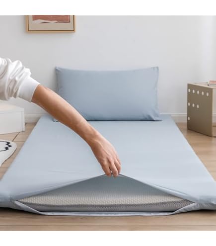 Tissu doux, durable et respirant : fabriqué à partir de coton de haute qualité avec une finition brossée délicate, cette housse de matelas est douce pour votre peau et améliore la circulation de l'air pour un sommeil confortable. Design imprimé élégant : ajoute une touche décorative subtile à votre chambre avec des motifs imprimés élégants. Parfait pour les tatamis, il garde votre matelas propre et frais tout en ajoutant un design imprimé élégant. Utilisation polyvalente et plusieurs tailles : idéale pour les tatamis, les futons ou les matelas traditionnels, cette housse en coton imprimé s'adapte à différentes tailles de matelas (lit simple, double, grand lit, très grand lit). Conseils d'entretien : lavable en machine pour un nettoyage pratique. Housse Imprimée Pour Matelas Futon Tatami Sans Futon, Coton Doux Avec Fermeture Eclair 150x200 Cm 92301003 Lavable en machine et facile d'entretien : conçue pour les modes de vie occupés, cette protection de futon est entièrement lavable en machine à l'eau froide. Il suffit de la fermer à la fermeture éclair et de la mettre au lavage pour garder votre espace de couchage frais et sans allergène. EKLENTSON Veste Militaire en Coton pour Homme avec Fermeture Éclair... Generic Housse de matelas futon de couleur unie, housse de matelas en tatami lavable avec fermeture éclair, housse de protection pour matelas de sol en coton pour protection contre la poussière, housse de protection douce pour tapis de couchage Protection complète avec fermeture éclair : la fermeture éclair intégrale assure un ajustement parfait autour de votre matelas futon, empêchant la poussière, les déversements et les allergènes de pénétrer. Durable et protecteur : protège votre matelas de la poussière, des taches et de l'usure, prolongeant sa durée de vie. Housse matelas futon unie écru 140x190 TERRE DE NUIT Fermeture : fermeture éclair intégrale pour faciliter l'insertion et le retrait du matelas. Il est résistant au rétrécissement et conçu pour durer, conservant sa douceur même après plusieurs lavages en machine. Coton doux et doux pour la peau : fabriqué à partir de tissu en coton respirant et confortable qui est doux sur votre peau. Idéal pour les chambres, les dortoirs ou les chambres d'amis, c'est un ajout pratique et élégant à vos essentiels de literie.