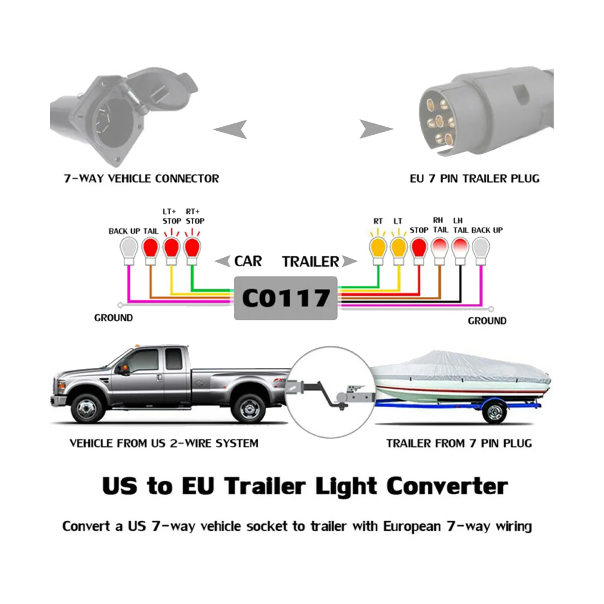 Adaptateur Prise Américaine Européenne Connecteur De Voiture En Plastique Pour Véhicule Américain 7 Voies Connecteur De Lame Vers Connecteur Rond Européen 13 Broches Plug And Play Pour Voiture Camion Adaptateur Câblage Véhicule Remorque Noter: Si votre véhicule américain a la prise RV Blade Socket à 7 pôles et que votre remorque européenne a la prise ronde à 13 broches, où votre voiture américaine doit séparer les signaux d'arrêt et de queue, ce connecteur de câblage de remorque devra être utilisé. Qiilu connecteur tv de type f 5pcs antenne TV mâle à F-type femelle... Spécification: Type d'article : connecteur de remorque. Remplacement pour camion, voiture, etc. Conversion facile --- Ce convertisseur électrique vous permet de changer un adaptateur de véhicule à 7 voies de style américain en un connecteur européen à 13 broches. Connecteur de remorque à 7 broches | Prise de cour... - Grandado Ce connecteur de remorque est fabriqué en plastique de haute qualité, et robuste, il est léger et convient à une longue durée de vie., Instructions --- 1., Avant de connecter le convertisseur au véhicule, vérifiez que tous les signaux de la voiture ont été éteints 2., Connectez le convertisseur à la prise de lame RV 7 voies existante sur le véhicule 3., Insérez la fiche de remorque UE du l'autre côté dans le convertisseur de prise 4., Vérifiez que toutes les connexions sont soumises à la sécurité 5., Lors du fonctionnement, l'entretien de l'adaptateur électrique n'est pas nécessaire. Liste des packages : 1* connecteur de remorque. Câblage du connecteur de véhicule américain à 7 voies à la remorque avec un câblage de remorque européen à 13 voies. Taille : 7 broches à 13 broches Matériel: plastique Compatibilité : remplacement pour camion, voiture.