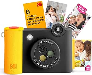 Rendez la prise de photos amusante à nouveau avec la caméra instantanée numérique KODAK Smile+. Test : kodak Smile appareil photo instantané 2-en-1 fuchsia Emportez cette caméra rechargeable partout où vous allez pour capturer des photos de souvenirs au parc, en vacances, lors de fêtes, en road trip, et bien plus encore. FILTRES INTERCHANGEABLES – Changez de style (naturel, magenta, jaune) en tournant un bouton. FACILE À UTILISER – Levez la caméra, tenez-la immobile, appuyez sur l’obturateur jusqu’au bip. Appareil Photo Instantané KODAK Smile+ 2-in-1 Digital Instant Print Camera & Wireless Bluetooth Photo Printer Starter Bundle + Soft Case + Zink 20pk Sticky-Back Photo Paper - 10MP, Special-Effect Rotating Lens Et avec l'objectif unique à filtres interchangeables intégré, prendre de nouvelles photos ne devient jamais ennuyeux. PHOTOS 2x3” SANS ENCRE – Imprimez des images vibrantes sur papier Zink adhésif, sans encre. PRISE DE PHOTO, SAUVEGARDE – Sauvegardez vos photos sur une carte microSD insérée dans la caméra. Et puisque cette caméra est compatible avec le papier photo Zink, vous n’avez pas à vous soucier d’acheter de l’encre. KODAK Smile+ Cámara digital de impresión instantánea 2 en 1 e impresora de fotos Smile+ vous donne une raison de sourire. Step Slim Imprimante Photo Mobile Instantanée-Imprimez Sans Fil Des...
