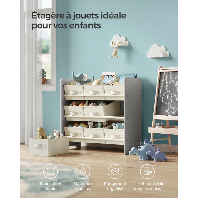 Apprend l’organisation en s’amusant ! Transforme le rangement en jeu créatif ! Vous pouvez avoir l'esprit tranquille. 【Sécurité et Robustesse Optimales】Fabriqué en bois robuste et plastique durable, ce meuble est stable et fait pour durer. Caractéristiques :Couleur : BlancMatériaux : Plastique PP, Métal, MDF (panneau de fibres à densité moyenne)Dimensions globales : 137 x 30 x 94,5 cm (L x P x H)Poids net : 27 kg Contenu de l’emballage :1 x Meuble de rangement pour jouets enfant8 x Boîtes en plastique Meuble De Rangement Jouet Blanc at Faith Fussell blog SoBuy Étagère de Rangement pour Livres et Jouets Enfant Bibliothèque Les angles arrondis préviennent les blessures, tandis que le kit anti-basculement inclus garantit une fixation murale sécurisée pour éviter tout risque de renversement. Livré avec des instructions claires et tout le nécessaire de montage, son assemblage est simple et peut même devenir un projet amusant à réaliser en famille. It’s the perfect way to teach responsibility and keep the play area tidy with minimal effort. Cette fonction unique ajoute une dimension éducative et ludique à ce meuble, transformant le rangement en une activité amusante. Meuble Jouet Enfant Meuble Rangement Jouets 9 Bacs Paniers Amovibles Tissu - Ciel & Terre Meuble Jeu Creatif Meuble rangement jouets 9 bacs paniers amovibles tissu - Ciel & terre 【Tableau Noir Créatif Intégré】Stimulez la créativité et l'imagination de votre enfant avec le tableau noir intégré ! Créativité Illimitée:Tableau noir intégré pour dessiner, écrire et afficher. Il peut y dessiner, écrire des messages ou afficher ses œuvres. Organisation Maximisée:9 étagères + 8 boîtes amovibles (dont 2 avec portes) pour ranger jouets, livres et vêtements. Design moderne et dimensions idéales (137x30x94,5 cm) pour tous les espaces. 【Assemblage Facide & Cadeau Ideal】Dimensions parfaites (137x30x94., 5 cm) pour s'adapter à tout espace.