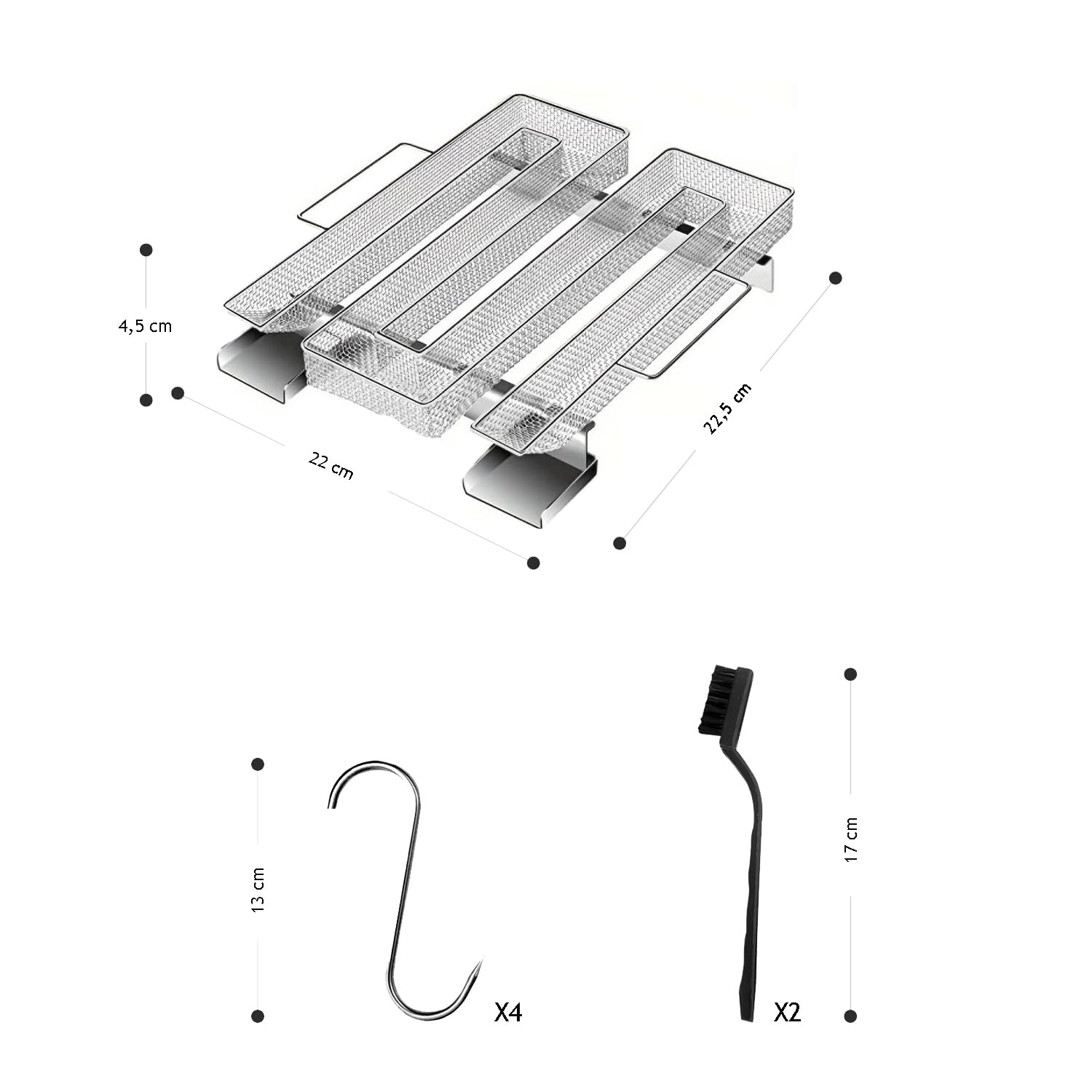 Matériaux de Haute Qualité: Le générateur de fumée froide est fabriqué en acier inoxydable 304 de haute qualité, fiable et exempt de substances nocives. Générateur de fumée froide n°4, le serpentin de fumage modulable Le générateur de fumée froide est fabriqué en acier inoxydable de haute qualité et équipé de grilles de sécurité et de deux poignées pratiques. Vous pouvez ouvrir le générateur de fumée ou le gril, quelle que soit la météo L'escargot fumoir peut être utilisé pour fumer de la viande, du fromage, etc. Contenu: 1 x Générateur de Fumée Froide, 8 x Crochets, 2 x Brosses. Caractéristiques: Matériau: Acier Inoxydable Poids : Environ 300g Dimensions : 22,5 cm x 21 cm x 5 cm Contenu: 1 x Générateur de Fumée Froide 8 x Crochets 2 x Brosses Remarque: 1., Les mesures étant prises manuellement, de légères erreurs peuvent survenir., 2., En raison des effets de lumière, de la luminosité, etc. Naisfei Générateur de fumée froide rond pour four à fumer, générateur Retirez la bougie et placez le fumoir dans la chambre de fumage Le générateur de fumée froide Sparbrand est facile à nettoyer : il suffit de tapoter les cendres et d'enlever les résidus avec une brosse métallique. Résultats de Fumage Optimaux: Le générateur de fumée froide assure une combustion uniforme et durable des copeaux de fumage grâce à sa grille en M, permettant un fumage à froid pendant 5 à 20 heures, idéal pour les cuissons longues Generateur de fuée froide Acier Inoxydable 304 Serpentin Fumée Froide 30cm - Pour Fumoir Viande/ Poisson + 4 Crochets Et Brosse Générateur Fumoir Froid Générateur Fumée Froide de légères différences de couleur peuvent apparaître entre les images et l'article réel.