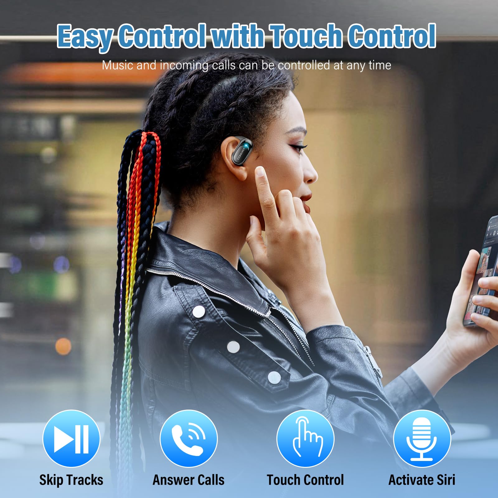 Ces écouteurs à conduction d'air à oreilles ouvertes s'appairent facilement avec les appareils iOS et Android. Ecouteurs Bluetooth 5.4 HiFi Stéréo Basses avec HD, IPX7 Étanche, Contrôle Tactile, pour Vélo, Noir Conception d'Écouteurs Ouverts pour une Vigilance Situationnelle : Ces casque bluetooth vous permettent de rester conscient de votre environnement tout en écoutant de la musique. Le coffret de charge offre 50 heures supplémentaires de fonctionnement, livrant un total de 58 heures pour vos pistes préférées. Idéal pour de longs voyages ou des réunions prolongées. Doté d'un affichage numérique LED pour une surveillance en temps réel de l'état de charge, le coffret prend. Ce ecouteur Sport audio utilise la technologie de conduction directionnelle de l'air, il dirige le son avec précision vers vos oreilles, pour une écoute parfaitement privée. Écouteurs Bluetooth Sans Fil, Ipx7 Étanche, Basses Profondes Stéréo Garantissant des appels clairs et une expérience de communication sans coupure. Que vous traversiez des rues animées ou participiez à des activités en plein air, vous restez connecté et alerte sans manquer un rythme. Ces écouteurs sans fil intègrent des 4 HD microphones dotés de la technologie d'annulation du bruit (ENC). Dernier Bluetooth 5.4 et appairage en une étape : les écouteurs sans fil sont équipés de la puce Bluetooth 5.4 avancée, spécialement réglée pour des signaux stables, une latence plus faible et des connexions plus rapides, vous offrant une expérience d'écoute à faible latence écouteur Sans Fil Sport Ecouteurs Bluetooth Sans Fil, Écouteurs Bluetooth 5.4 Avec HiFi Basses écouteurs Sport Avec Micro Puissance Rythmée pour une Intensité Maximale : Équipés de transducteurs à diaphragme de 14,2 mm, ces ecouteurs bluetooth sans fil sport diffusent un son cristallin et équilibré sur tous les genres musicaux, restituant fidèlement les nuances subtiles de vos morceaux préférés.