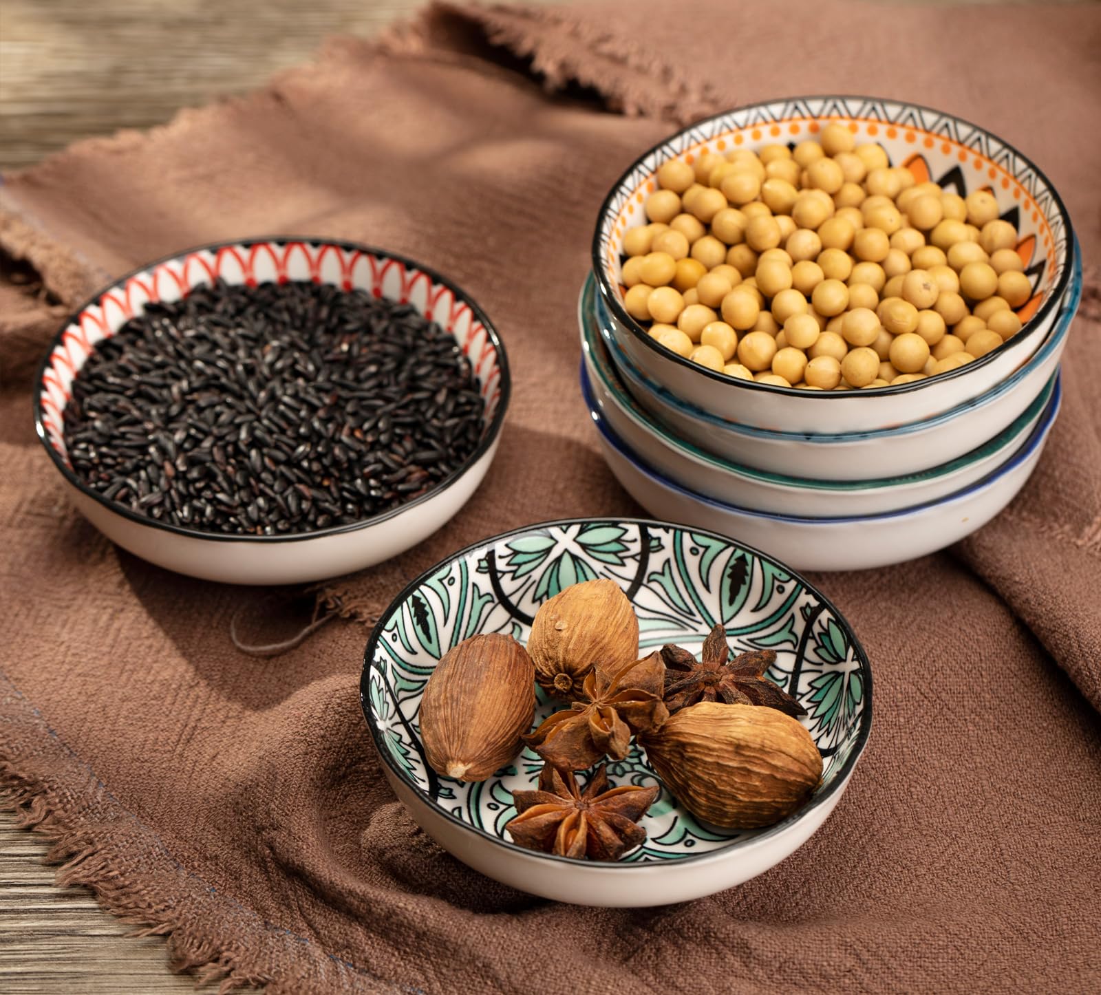 Parfait pour les trempettes personnalisées, comme le ketchup pour les chips, le beurre pour les crevettes, le chutney et l'huile d'olive. Bols à sauce en céramique de petite taille, faciles à tenir en main. Design unique avec 6 motifs, habillez votre cuisine dans différents styles. Design unique : motif Design unique et glaçage lisse. Ensemble de bols à sauce en céramique : ces bols à sauce assurent l'ambiance parfaite à chaque repas. Avis : bols à sauce soja japonais en céramique Swuut Bol à Pincettes Lot de 6 en Céramique de 7cm Pour,Préparation Bols à sauce en céramique de petite taille, faciles à tenir. Parfait pour les trempettes personnalisées, comme le ketchup pour les chips, le beurre pour les crevettes, le chutney et l'huile d'olive Donnez à chaque plat un aspect bien préparé Ces bols à sauce en céramique en porcelaine s'adaptent partout et sont fantastiques dans n'importe quel environnement Bols épices Tapas Design Chinois Soja Sauce Auanlay Lot De 6 Bols à Sauce Soja En Céramique De 85 G, S à Pincer, Tasses à Sauce, Petits Bols De Service Pour Plats D'accompagnement Mini Bol Céramique Qualité Alimentaire Design esthétique : nos bols à sauce disposent d'un design de style japonais et ont une taille idéale pour servir la sauce soja, les sauces dip, les tapas, les noix, les olives, les fraises, les craquelins, le chocolat, les bonbons et plus encore Simple et élégant, les couleurs simples et le design de style chinois ajoutent plus de beauté à votre style de vie Ces bols à sauce en céramique en porcelaine s'adaptent partout et sont fantastiques dans n'importe quel environnement. Donnez à vos plats ordinaires un aspect soigneusement préparé Particularités : Ces bols à sauce créent l'ambiance parfaite à chaque repas. Les mesures étant prises à la main, les tailles indiquées peuvent varier légèrement. Large gamme d'utilisations : le glaçage lisse naturel le rend facile à nettoyer et garde propre pendant longtemps sans laisser d'odeurs de nourriture.