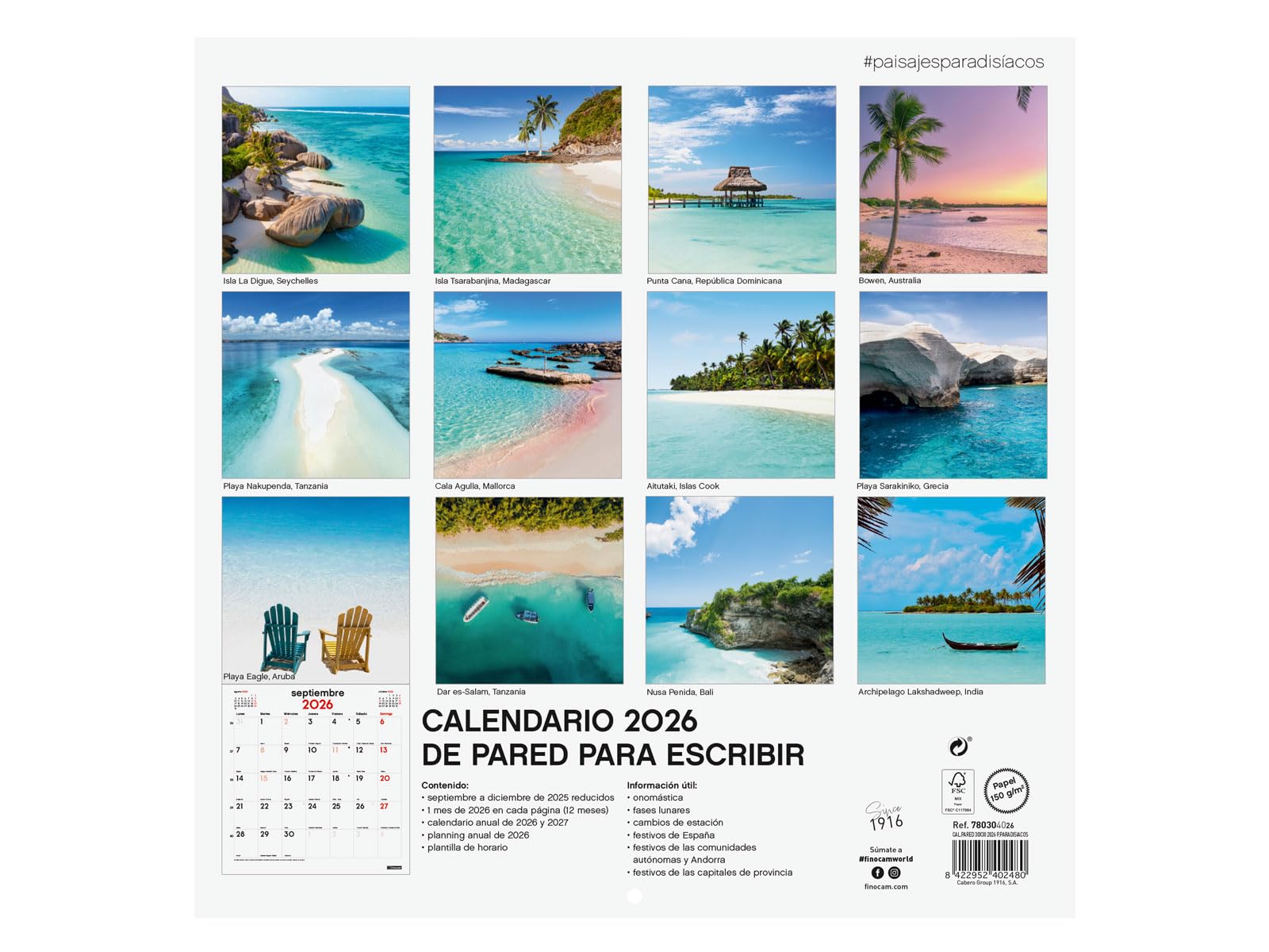 Durée : janvier 2026 - décembre 2026 (12 mois) + sept-déc., 2025 (4 mois) réduit Thèmes variés et image différente chaque mois, idéal pour décorer le bureau ou la maison. Calendrier Scolaire 2026 Gratuit Finocam - Calendrier Mural 30 X 30 Cm Pour écrire 2025 Mois Vue Janvier 2025 - Décembre 2025 (12 Mois) Paysages Paradisiaques Espagnols Calendrier 2026 à Imprimer Gratuit et des capitales de province et début des nouvelles années chinois, musulman, orthodoxe et hébreu. Intérieur : affichage du mois., Planification mensuelle. Le calendrier dispose également d'autres contenus supplémentaires : calendriers réduits de septembre à décembre de l'année précédente, calendrier annuel de l'année et de l'année suivante, planning annuel, liste des jours fériés des CC AA. Langue de l'article : espagnol. CONTENU : L'annualité du calendrier comprend les informations relatives à: onomastique, jours fériés nationaux, jours fériés, jours indiqués, phases lunaires et changements de saison. Décembre 2026 à consulter ou imprimer Les dimensions du calendrier suspendu sont : 30 x 60 cm. Paysages paradisiaques. Parfait pour la planification.
