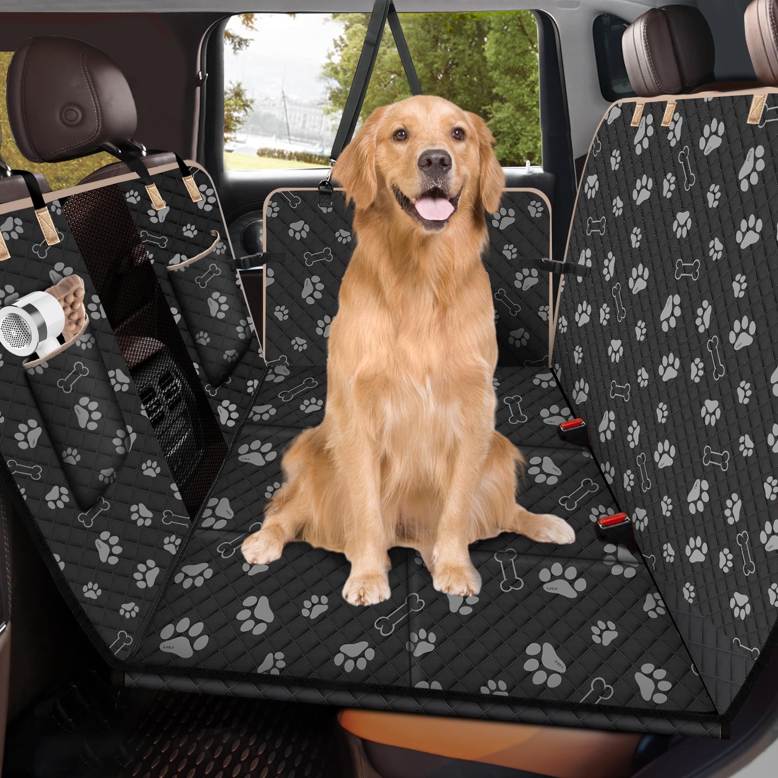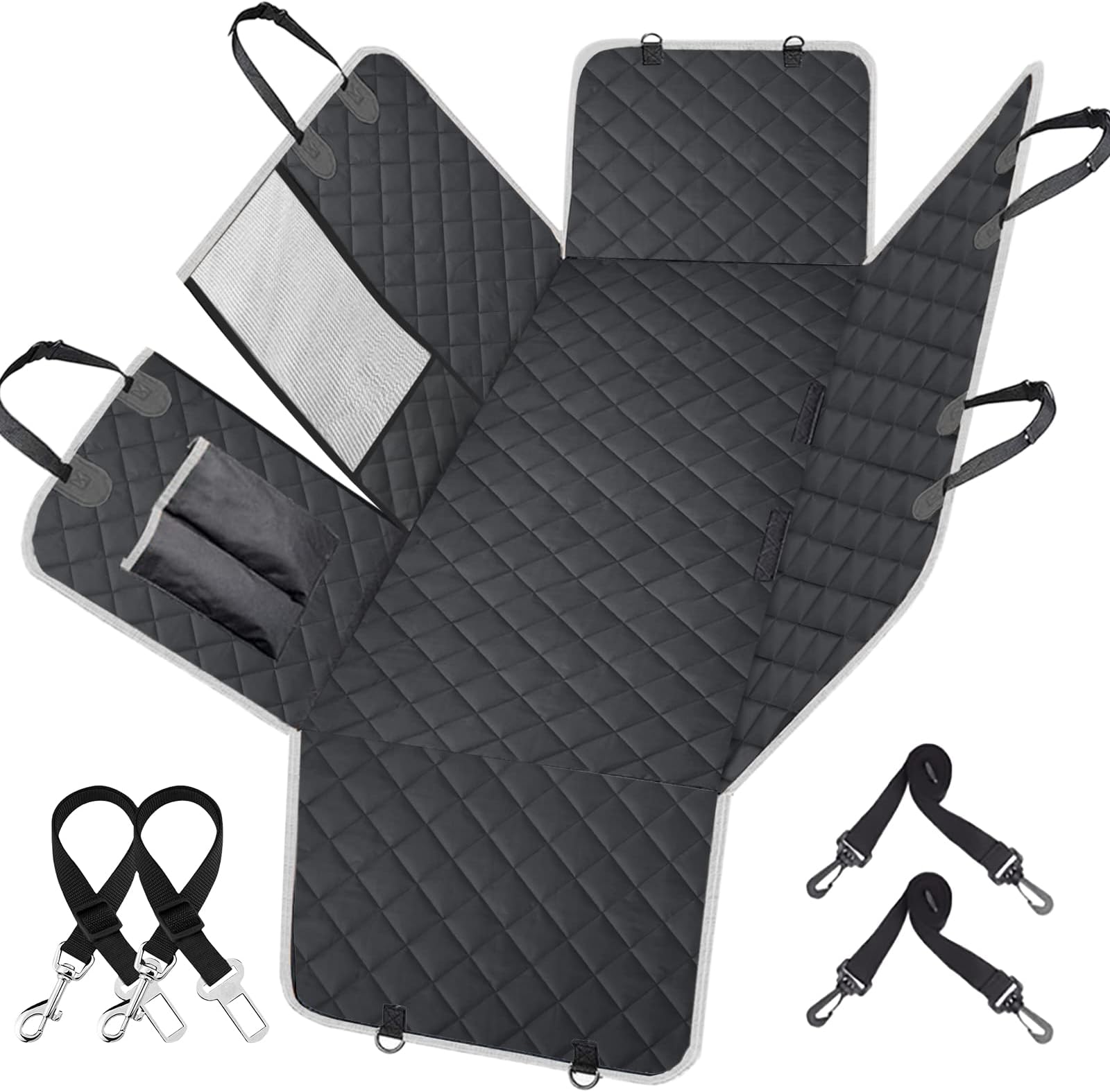 L'extension de siège arrière pour chiens peut empêcher les animaux de compagnie de glisser lors de promenades cahoteuses. Caractéristiques : Le fond solide offre une surface robuste et confortable pour que votre animal de compagnie puisse se reposer. Avec fenêtre en maille et poches : cette protection pour siège arrière de voiture dispose d'une fenêtre en maille qui permet à vos animaux de compagnie de vous voir et de rester calmes pendant le voyage. Une ceinture de sécurité pour chien incluse pour empêcher votre animal de compagnie de glisser pendant la conduite. Sac de rangement inclus. Tapis imperméable de banquette arrière pour chien DOGGO ON THE GO - Housse de siège de voiture pour chien, protection de Compatibilité universelle : avec ses 140 x 77 cm, l'extension de siège de voiture pour chien s'adapte à la plupart des modèles de voiture populaires, qu'il s'agisse d'une berline, d'un SUV ou d'une voiture familiale (Chevrolet Silverado, Ford F-Series, RAV4, Dodge Ram 1500/2500/3500, Toyota Camry, Honda CR-V, Toyota Corolla, etc., ). Le lit de voiture pour chien est un excellent cadeau pour tous les amoureux des animaux de compagnie. Facile à installer et à nettoyer : il ne faut que quelques secondes pour enlever ou installer la housse de siège arrière pour chien. Plus de chutes : avec les 6 plaques de charge robustes intégrées, la housse de siège arrière pour chiens est assez solide pour supporter vos chiens jusqu'à 72,6 kg. Housse Siege Voiture Chien PJDDP Extension De Siège Arrière Pour Chiens, Matelas De Lit De Voiture Pliable Et Non Gonflable, Résistant Aux Rayures, Matelas De Camping Portable Pour Voiture, SUV, Camion Hamac Voiture Chien Fond Rigide Test : housse extensible SHARLOVY pour chiens en voiture Peut facilement accueillir de grands chiens jusqu'à 72 kg et s'adapte à la plupart des sièges de voiture (SUV, berlines, voitures familiales)., - - Caractéristiques du produit : Couverture de siège de voiture pour chien : 140 x 77 cm (rabats latéraux non inclus). 40 % de gain de place : l'extension de siège arrière pour chiens transforme tout l'espace du siège arrière en un espace de repos pour les chiens. Housse de siège auto pour chien Lekereise pour siège arrière. Notre housse de siège pour chien est fabriquée en tissu Oxford 600D imperméable et résistant pour protéger vos sièges de voiture des poils d'animaux et des rayures. Facile à nettoyer avec un chiffon humide ou un aspirateur.