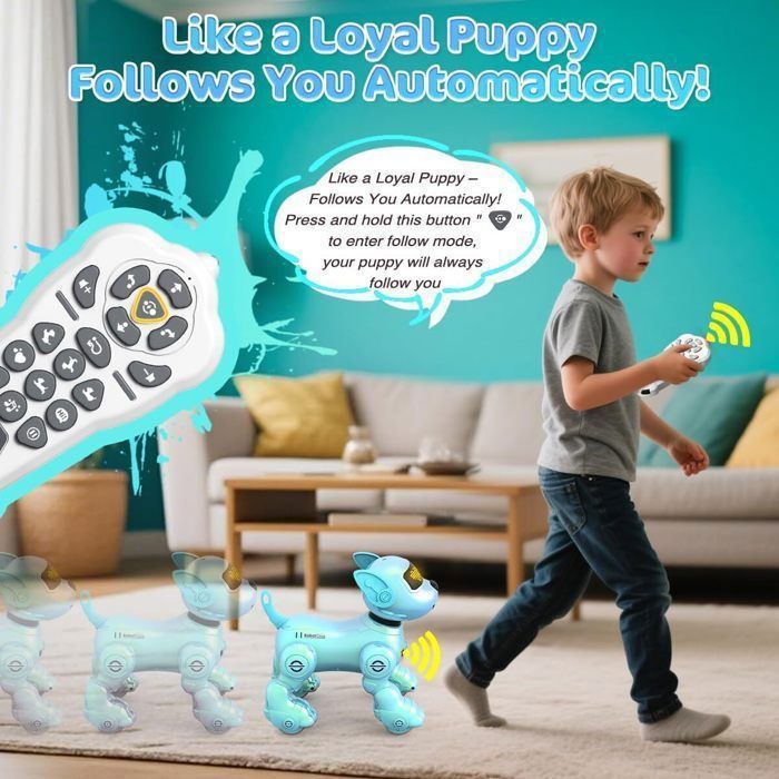 Le jouet robot est équipé d'une poignée à manches longues et peut exécuter des commandes vocales via Bluetooth, telles que les salutations, le kung-fu, la natation, l'assise, les saltos et les bénédictions. Interaction avancée Poignées et gestes intelligents : ses bras robotiques ultra-flexibles permettent des coups de main réalistes, des high-fives et même de ramasser des objets. Contrôle vocal et tactile : répond aux commandes, reconnaît les visages et réagit avec des yeux LED émotionnels et des sons. Cadeau idéal pour les enfants : ce robot télécommandé est fabriqué à partir de matériaux non toxiques de haute qualité et est livré dans un emballage élégant, ce qui en fait un excellent jouet interactif télécommandé. C'est idéal pour cultiver l'intérêt et les compétences des enfants dans le domaine de la programmation. Robot chien teksta puppy bleu : le top 30 des eilleurs de 2024 | Achat... Il prend en charge la connectivité Bluetooth et peut interagir via des commandes vocales en anglais. Fonctions multiples : le robot Emo dispose de plusieurs fonctions telles que les coups de main biomimétiques, la programmation, le chant, la danse et la narration et accompagne votre enfant à travers des moments amusants. Suspension adaptative 4WD : grimpe, saute et équilibre automatiquement sur des surfaces inégales. Chien robot programmable : le système de programmation intégré permet au robot chien d'effectuer des tâches via des signaux de programmation APP. Robot intelligent RC, jouet télécommandé de chien sans fil électrique, peut chanter la danse et Description du produit Ledovan Next-Gen RoboDog - Le compagnon robot interactif ultime. Application à distance et verrouillage de sécurité pour un jeu supervisé. Le chien robot effectue les actions appropriées selon les commandes et offre une expérience interactive complète pour rendre le temps de jeu de votre enfant encore plus amusant Danser et chanter : effectuez des routines synchronisées vers la musique avec des effets LED dynamiques. Jouet Robot Dansant Avec Application Ledovan Robot Chien Télécommandé Pour Enfants De 3 à 12 Ans Robot éducatif Danse Musique Il peut interagir avec les enfants de manière amusante, stimuler leur créativité et est le choix idéal pour accompagner les enfants dans leur développement et animer l'atmosphère familiale [Chien robot interactif intelligent] Le robot peut exécuter 12 commandes vocales.