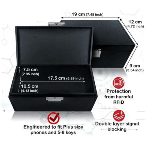 Boîte Faraday pour Clés de Voiture et Fibre Carbone Faraday La boîte de blocage de signal de clé de voiture NESTLING vous permettra de stocker non seulement votre clé mais aussi votre carte bancaire, téléphone portable, tout appareil Bluetooth, que toute votre famille les données financières sont protégées. C'est un excellent cadeau à offrir à votre famille, vos amis, etc. BOÎTE FARADAY FAIT MAIN HAUT DE F Couche extérieure - fabriquée en cuir PU de haute qualité et serrure à boucle en métal solide, parfaitement pour créer un espace blindé complet., La doublure. Notre boîte de blocage de signal pour clés de voiture peut tenir jusqu'à 6 clés en fonction de la taille de la restauration à plusieurs membres de la famille, c'est un rapport qualité-prix! Protégez votre voiture]Boîtier à clés de voiture antivol avec boîtier en fibre de carbone, conçu pour bloquer efficacement les signaux RFID, GPS et autres signaux sans fil, empêchant ainsi les attaques potentielles de pirates informatiques ou les tentatives de vol. Il offre une protection inégalée pour vos clés de voiture et vos appareils électroniques.[Prévenir... Description du produit BOÎTE DE BLOCKER DE SIGNAL DE CLÉ DE VOITURE DE NESTLING POUR Les techniques de piratage modernes sont de plus en plus avancées, les voleurs utilisent un équipement sophistiqué pour exploiter la technologie sans clé en détournant le signal de la clé de voiture, généralement de la sécurité de la maison du propriétaire, et tromper à distance le système pour déverrouiller les portes et démarrer le moteur, voleur peut voler votre voiture en aussi rapidement que 30 secondes. La boîte de protection de clé fournit un bloqueur de signal complet pour votre porte-clés de voiture et fournit une protection antivol contre les criminels. Les pochettes de clés RFID bloquent tous les signaux pour tous les appareils qui peuvent être installés. La cage de bloqueur de signal RFID peut complètement bloquer le signal. 【Garantie de qualité】 : notre boîte de blocage de signal en cuir de qualité supérieure pour clés de voiture vous permet de garder une longueur d'avance sur tous les voleurs de voiture. Taille unique Convient pour Porsche, Lexus, Remorque, Mustang, Swift, Mercedes, Amg, moto, Vauxhall, Corsa, Kuga, Ford Focus, Volkswagen, Toyota, Audi, Golf, Skoda, Renault, Citroen, Nissan, Qashqai, Aircross, Land Rover Kevlar, Jaguar Xf, BMW Sport Tapis de sol Série 1 et etc. Nous utilisons un tissu de protection double de haute qualité, un blindage 100% du WiFi (2,4 et 5 GHz), Bluetooth, des signaux de téléphone portable, des réseaux 5G, GPS, RFID et des signaux pour les clés de voiture. Pochette Faraday Crochet en alliage de zinc sur le dessus pour accrocher sur un jean ou un sac à dos, chaîne intérieure de sécurisation des clés facile à entrer ou à sortir de votre véhicule. Protège vos données personnelles et financières en bloquant les scanners et lecteurs RFID de détecter les signaux RFID de vos cartes. Design élégant et article bonus : cette boîte antivol élégante et sophistiquée s'adaptera bien à n'importe quelle zone de votre maison. Lorsque vous sortez ou dormez, vous n'aurez plus jamais à vous soucier du piratage du signal Empêchez les criminels d'utiliser la technologie pour entrer dans votre véhicule ou système d'entrée sans clé propriété. Soyez assuré que personne ne peut scanner vos clés après avoir mis les clés dans la boîte de protection du signal pour empêcher efficacement le vol de la voiture. C'est un moyen le plus simple et le plus simple de garder votre voiture en sécurité, donner la tranquillité d'esprit lorsque vous dormez la nuit! Protection Anti-vol Voiture Sans Clé Todoxi Faraday Box Boîte De Protection RFID Pour Clés De Voiture En Cuir Synthétique Avec étui Blindage Signal Également pour téléphone, cartes de crédit et documents personnels quelques-uns des articles que notre boîte antivol peut protéger. Protégez votre voiture avec notre boîte de blocage du signal Faraday, qui peut empêcher les voleurs de utiliser des outils d'écrémage du porte-clés pour copier ou imiter le signal unique de votre porte-clés et le code sans fil pour accéder à votre véhicule ou à votre système d'entrée sans clé. Achetez Faraday Boîte de Protection pour Clé, Boîte de Blocage de Signal RFID à Canada. Magasinez plus de Coffrets de sûreté disponible en ligne à Le tissu intérieur est fabriqué en tissu double blindage de haute qualité qui garantit une meilleure isolation du signal.