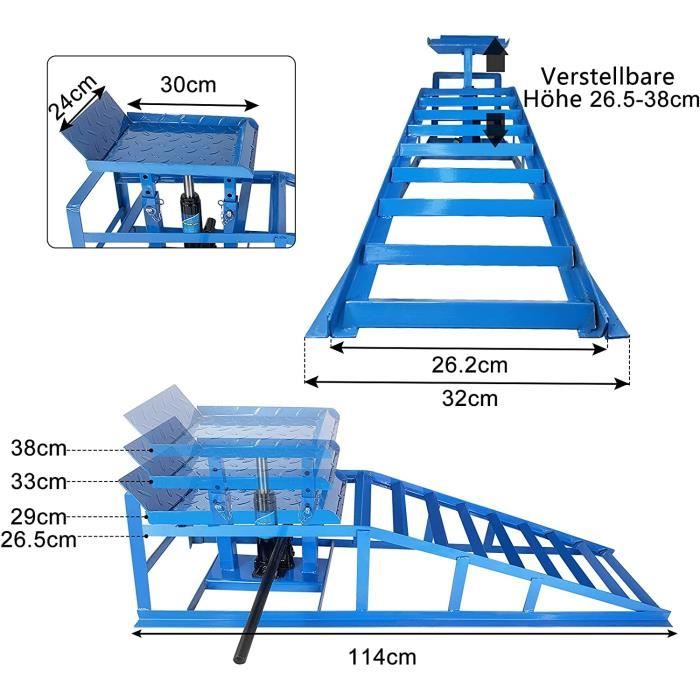 Les pieds antidérapants garantissent que les rampes de service ne glissent pas sur les sols en béton., Distance optimale. Ils sont fabriqués en plastique solide, durable et assez robuste avec une capacité de charge de 2,5 tonnes (chaque paire). Poids du produit 7,2 kg par lot , Taille : 1 Lot de 2 Solution de service automobile. Avancez lentement sur les rampes pour charges lourdes jusqu'à ce que vous soyez sur le dessus de la rampe. HENGMEI Lot de 2 projecteurs de construction 50 W blanc chaud avec... Cette hauteur de levage garantit un levage fiable tout en offrant un accès pratique au bas de votre véhicule pour l'entretien de routine., Facile à utiliser. Placez les blocs de voiture derrière les roues pour plus de sécurité pendant le travail. Hauteur de levage correcte Une hauteur de levage de 17 cm offre le hub sûr et stable dont vous avez besoin pour l'entretien des camions, des camionnettes et des voitures. Placez vos rampes de service de camion devant les roues du véhicule sur une surface dure et plane. HENGMEI Rampe d'accès en plastique pour voiture jusqu'à 2,5 Hengmei Lot de 2 rampes de service pour voiture Ces rampes de service automobile sont conçues pour aider les véhicules abaissés lors du levage pour l'entretien et la maintenance. Cales en plastique résistant pour camping-car. Répartissez uniformément le poids de votre véhicule avec ces rampes automatiques pour le changement d'huile et de courroie. Surface rainurée La partie supérieure est conçue comme une rainure pour monter et sécuriser parfaitement les pneus, ce qui empêche efficacement les voitures de glisser. Rampes Antidérapantes HENGMEI Lot De 2 Rampes D'accès - En Caoutchouc - Portable - Pour Rampes D’accès Voiture Le kit de rampes de service de voiture en 2 parties offre une excellente solution aux problèmes auxquels sont souvent confrontés les propriétaires de véhicules abaissés et d'équipes de course et leur offre un moyen plus facile d'exposer ou de réparer leurs voitures. L'inclinaison progressive soulève votre camion ou votre voiture à 17 cm du sol.