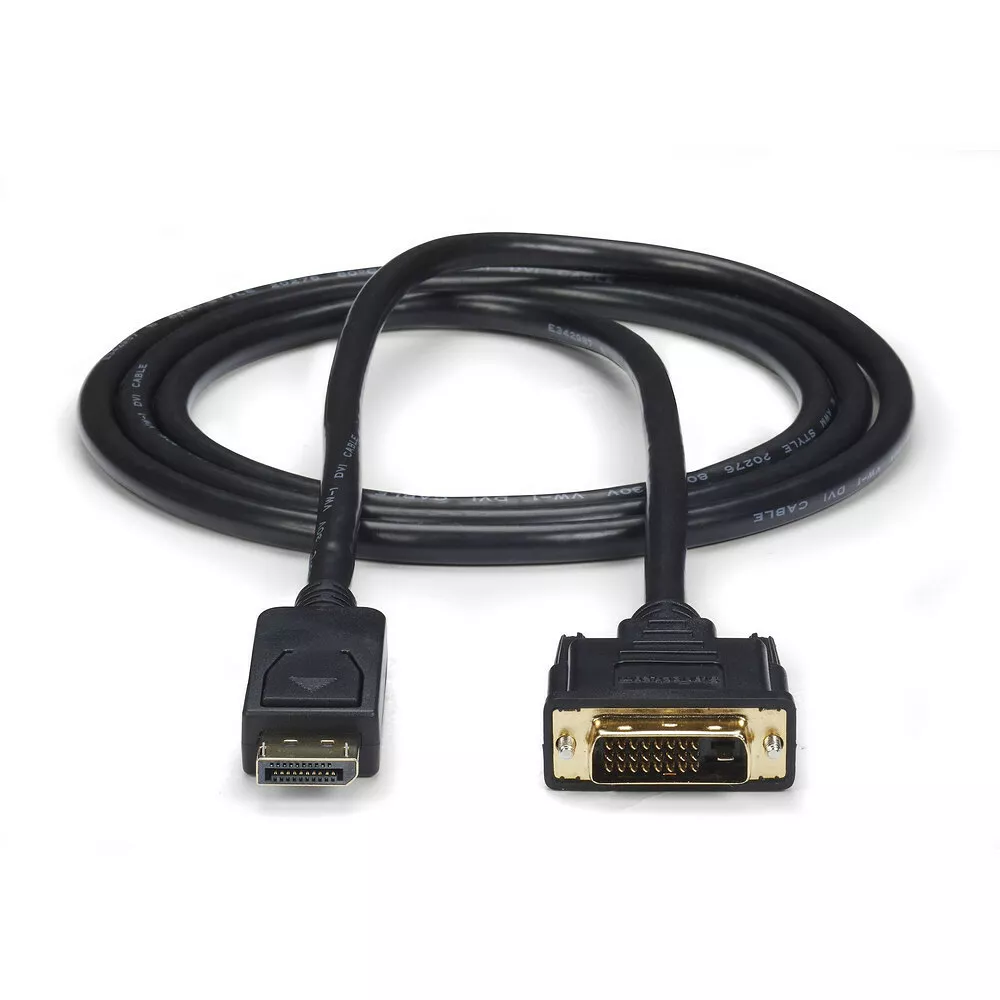 Prise en charge DVI 225 MHz/2,25 Gbit/s par canal (6,75 Gbit/s sur tous les canaux) Câble Vidéo 1080p Câble Mini DisplayPort Vers DVI 1.8m - 1080p, Compatible Thunderbolt Mac/PC Connecteur Vidéo 1080p Mini DisplayPort Mâle Vers DVI-D 1.8 M Il s'agit d'un câble DisplayPort vers DVI pour interfacer les ordinateurs PC et ordinateurs portables DisplayPort de nouvelle génération avec des écrans DVI conventionnels, tels que les écrans CRT, LCD et projecteurs. Prend en charge la bande passante DVI 225 MHz/2,25 Gbit/s par canal (6,75 Gbit/s tous les canaux) Le câble DP vers DVI est une solution pratique et économique pour profiter pleinement de votre écran DVI, sans avoir à passer à un moniteur DisplayPort. Le câble offre une construction de haute qualité et prend en charge des résolutions vidéo à bande passante élevée jusqu'à 1920 x 1200 ou des résolutions HDTV jusqu'à 1080p Entrée : DisplayPort mâle 20 broches, sortie : DVI mâle (24+1) Prend en charge l'entrée DisplayPort 1., 1a et la sortie DVI, prend en charge la plus haute résolution vidéo DVI 1080p. Câble 1.8m Single Link Cablecc Câble DisplayPort DP Mâle Vers DVI Mâle Single Link Câble 1,8 M Mâle Mâle