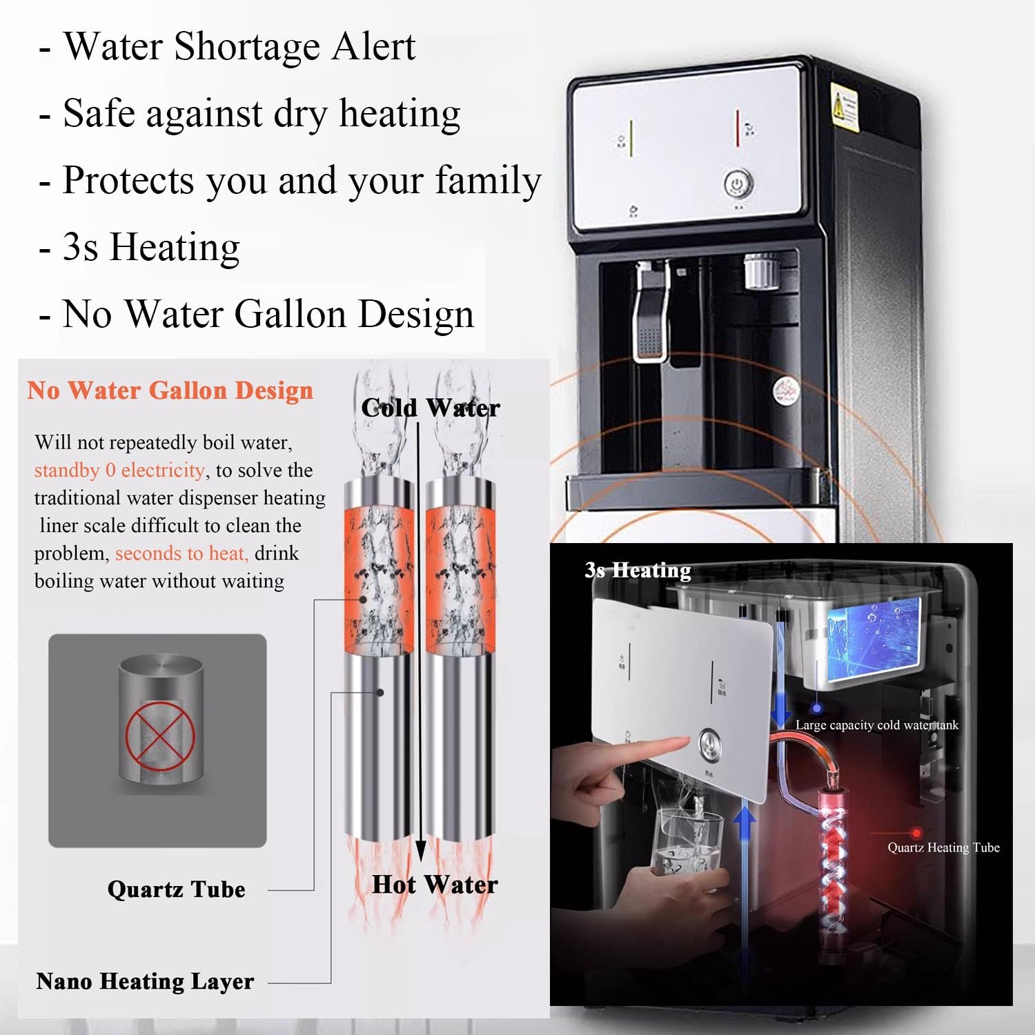 Il suffit d'ouvrir la porte inférieure et d'y placer le seau. Fontaine à eau sur réseau - eau froide/chaude - LIMAN La structure du seau inférieur facilite le changement d'eau, éliminant ainsi les tracas du changement d'eau traditionnel. Que vous soyez à la maison, au travail ou la nuit, il est silencieux, créant un environnement calme et confortable. Silencieux et silencieux : Le bruit de fonctionnement de ce fontaine eau fraiche est de seulement 35 dB, comparable à un murmure. Il fournit rapidement de l'eau glacée pour dissiper la chaleur estivale ; il peut également fournir de l'eau chaude à tout moment, pour une préparation de thé et de café pratique et sans souci. Sûr et intelligent : Ce distributeur eau froide est équipé d'une fonction de verrouillage enfant pour empêcher efficacement les enfants de le toucher accidentellement, garantissant ainsi la sécurité et témoignant du soin apporté à sa conception. Distributeur d'eau sur réseau ou à réservoir bonbonne Pour toute question, veuillez nous contacter à temps. Fontaines à eau bonbonnes ou sur réseau Cantal Fontaine Chargement Bas Bouteille 19L Fontaine à Eau Sur Pied Série 6 Acier Inoxydable Avec Jet à Trois Distributeur Eau Domicile Filtre Double commande chaud/froid : Ce fontaine a eau est équipé d'une technologie électronique de refroidissement et de chauffage, et ses deux sorties d'eau permettent respectivement l'eau chaude et l'eau froide. Nous vous répondrons sous 24 heures. Apparence tendance : Ce fontaine a eau fraiche distributeur eau affiche une allure tendance et des lignes simples et épurées. Il s'adapte parfaitement à diverses situations, comme les bureaux modernes, les salons, les salons de thé, etc. Seau amovible : Ce refroidisseurs et fontaines à eau est doté d'un seau monté sur le fond, vous n'avez donc pas besoin de le soulever pour changer l'eau.