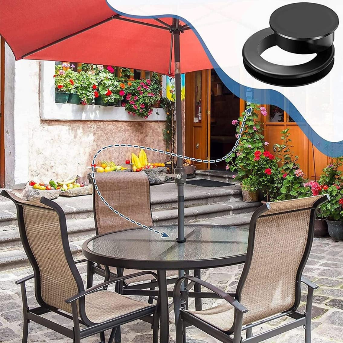 Fonction: Le bouchon et l'ensemble du bouchon du cycle du trou du parapluie conviennent à la réparation des parapluies de terrasse, à la prévention des rayures et à la réduction du balancement du parapluie causée par le vent., ., De plus, la couverture peut décorer le dessus de table lorsque votre parapluie n'est pas utilisé. Patio Table Tableau anneau de trou, bouchon de bague de trou de parapluie Ensemble de bougie pour la table de patio Insérer le bouchon de bague de parasol et le capuchon pour pont de jardin Description: Fait de matériau en PVC, l'anneau de trou de parapluie est et robuste pour une utilisation de longue date., ., L'anneau de parasol réduit le balancement du parapluie causé par le vent., ., Ces anneaux de trous de parapluie peuvent être largement appliqués pour les meubles de terrasse, l'anneau de trous de parapluie de table est idéal pour le café, le bar, le salon de thé, la cour ou une autre table de patio en verre., ., Fonctionnalités:., ., Anneau de trou de table de parasol., ., -Color: noir., ., -Material: PVC., ., -Size: environ 4,7 cm / 1,85 pouce., ., 6,1 cm / 2,40 pouces., ., Remarque: Mesure manuelle, veuillez laisser de légères erreurs sur la taille., ., Les couleurs peuvent exister une légère différence en raison de différents écrans., ., Package incluant 1 * Rague de trou de la table de parasol noir Facile à installer: il suffit de mettre le bouchon en anneau dans le trou et de couvrir le trou avec le capuchon ou d'insérer avec un parapluie., ., Il est facile à supprimer., ., Le bouchon de bague est pratique pour vous., ., Veuillez mesurer le diamètre du trou de parapluie avant d'acheter. Tables de balcon et de jardin avec trous pour parasols L'insert du trou du parapluie est fait de matériau en PVC de haute qualité, qui est robuste et résistant à l'usure pour une utilisation de longue date. Cône de parapluie avec anneau de coin, pour ouvert... – Grandado Anneau De Trou Parapluie Table Bouchon De Trou De Parapluie Pour Table De Patio, ... – Grandado Réduction Balancement Parasol Vent PIED DE PARASOL Table Housse Parapluie Bouchon Trou EUR 7,39 - PicClick FR