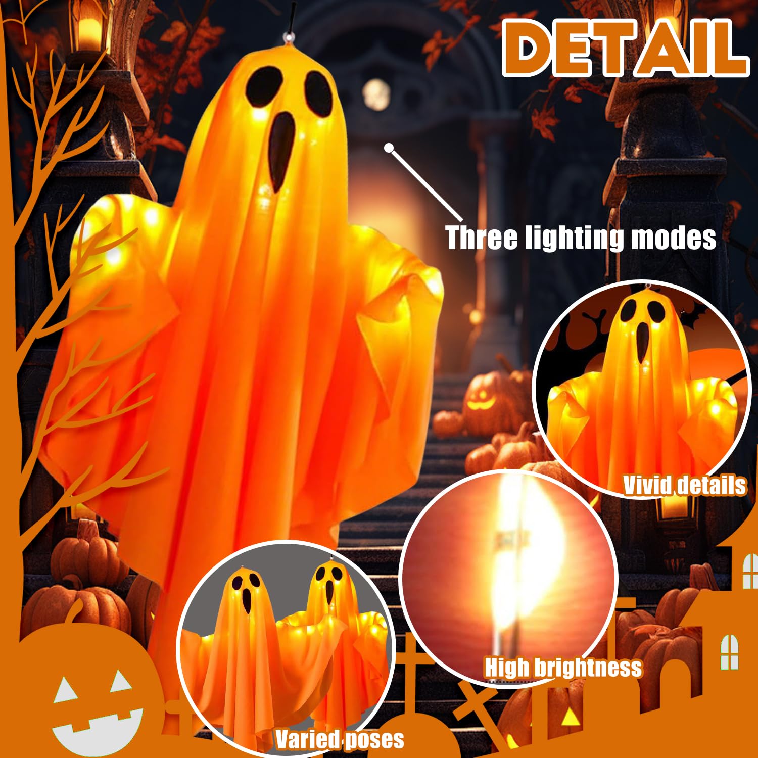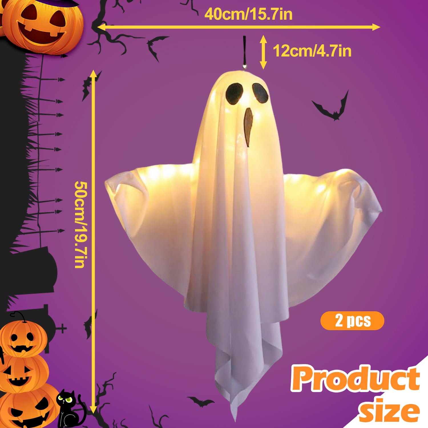 📢 En raison de la différence de réglage de la lumière et de l'écran, la couleur de l'élément peut être légèrement différente de celle des images. 👻 Le halloween fantome est équipé d'une corde suspendue. Fantômes Polyester Bras Flexibles HBSFBH Halloween Suspendu Fantôme, 2 Pièces Fantôme Lumineux Suspension Extérieure Jardin TD® Halloween decoration suspendu fantôme grand électrique activé par 【Materifications de qualité haute】Le halloween decoration fantôme est fait de polyester de haute qualité, de tête de balle PE et de bras en mousse, qui est sûr et non toxique, avec des détails exquis, légers et durables, peut flotter dans le vent et créer une atmosphère effrayante. 【Deco halloween fantôme】Les Halloween Fantôme Decoration avec Lumière LED sont parfaits pour décorer des fêtes d'Halloween intérieures et extérieures, des maisons hantées, des chambres secrètes, des théâtres, des bars, des magasins, des performances de scène ou ailleurs dans la maison. Les décoration de fantômes sont munies d'une cordelette, idéale pour une décoration intérieure et extérieure. 【Bras flexibles et pliables】Le fantôme d'Halloween possède des bras pliables et extensibles à volonté. Halloween décoration, tête de mort décoration, Jardin rideau d... 👻 Les bras flexibles peuvent être placés comme vous le souhaitez et la forme peut être ajustée selon vos propres besoins, adaptés pour être accrochés aux arbres ou à d'autres lieux de décoration extérieure. Description du produit: 👻 Halloween Ghosts Hanging propose trois modes: lumière constante, clignotement lent et clignotement rapide, pour créer différentes ambiances de vacances selon vos souhaits. 👻 Les deco halloween interieur fantômes LED sont fabriquées en polyester de haute qualité, doux et confortable, léger et flottant au vent.