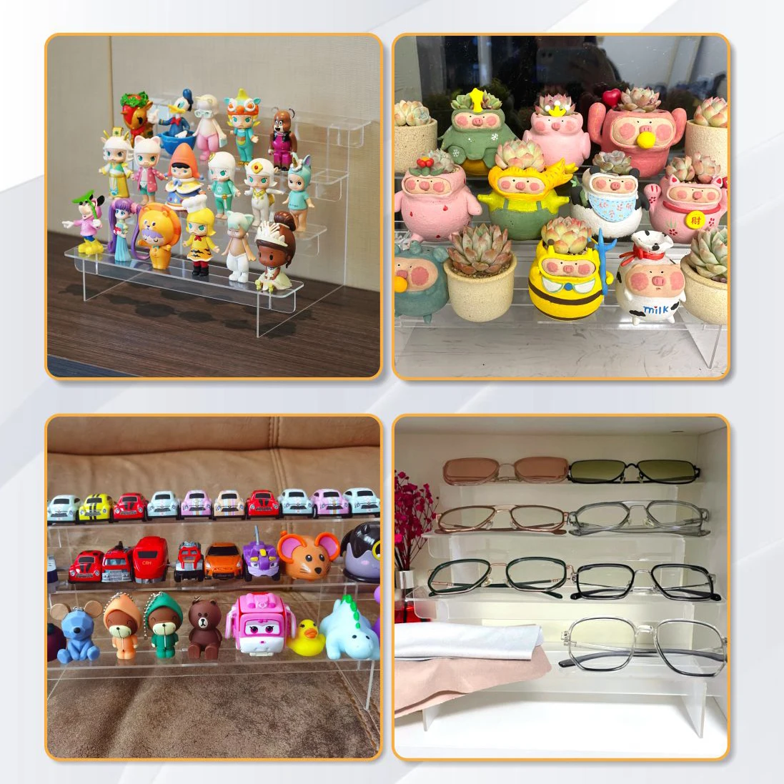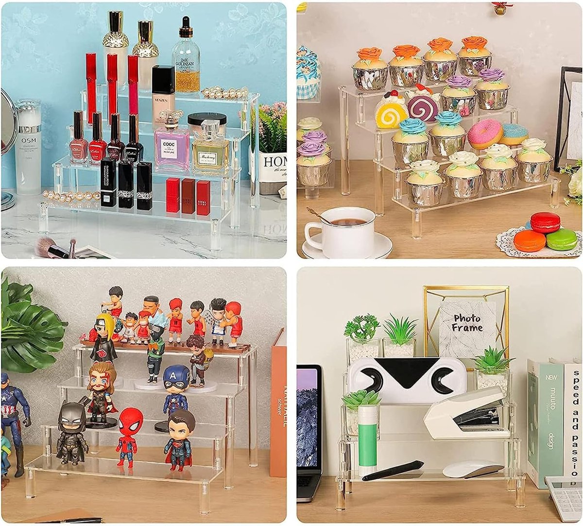 cinq couches de 50 cm de long (50 x 32 x 25 cm)., Couleur : transparent. * Design détachable : le présentoir dispose d'un design amovible pratique, permettant un nettoyage et un rangement faciles lorsque vous ne vous en servez pas. *Utilisation polyvalente : le présentoir en acrylique est adapté à une variété de paramètres, ce qui le rend parfait pour présenter des cupcakes, des parfums, des bijoux, des objets de collection, et plus encore. Cette flexibilité vous permet d'afficher efficacement des articles de différentes tailles et quantités. Son design transparent ajoute de l'élégance à n'importe quel espace, présentant magnifiquement vos produits. Presentoir Figurine ULENDIS Lot De 2 Présentoirs à 4 Niveaux En Acrylique Transparent Pour Objets De Collection, Cupcakes, Parfums, Bijoux, Décoration Et Organisation (40,6 X 31,5 X 19,6 Cm Rangement Plexi Nombre de pièces : 1., Contenu de l'emballage : 1 présentoir. Disponible en plusieurs tailles : 40 cm ou 50 cm de long, avec des hauteurs allant de 10 cm à 25 cm. Taille : deux couches de 40 cm de long (40 x 14 x 10 cm), trois couches de 40 cm de long (40 x 20 x 15 cm), trois couches de 50 cm de long (50 x 20 x 15 cm), quatre couches de 40 cm de long (40 x 26 x 20 cm). Utilisez-le pour les cupcakes, les parfums, les bijoux, les objets de collection, et plus encore. Présentoir de Livres, 6Pcs Présentoirs Chevalets de Table, Présentoir de Table en Acrylique... Caractéristiques : * Matériau acrylique : le présentoir est fabriqué en matériau transparent et acrylique, utilisation durable sans rouille. quatre couches de 50 cm de long (50 x 26 x 20 cm), cinq couches de 40 cm de long (40 x 32 x 25 cm). [Présentoir polyvalent] : ce présentoir en acrylique à 2 à 5 couches est parfait pour présenter une variété d'articles. * Affichage élégant : avec son design transparent, le présentoir ajoute une touche d'élégance à n'importe quel espace, permettant à vos produits d'être magnifiquement présentés. Présentoir multicouche : ce présentoir en acrylique est disponible en plusieurs configurations, y compris 1, 2 ou 3 couches, vous permettant de présenter élégamment des cupcakes, des parfums, des bijoux et des objets de collection Coolzon Présentoir acrylique transparent à 5 couches transparent pour petits gâteaux, parfus Compatibilité : cupcakes, parfums, bijoux, objets de collection.