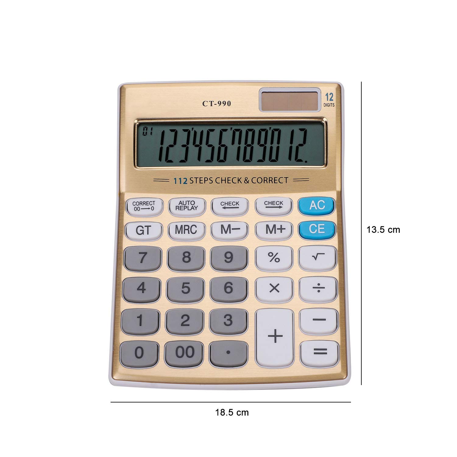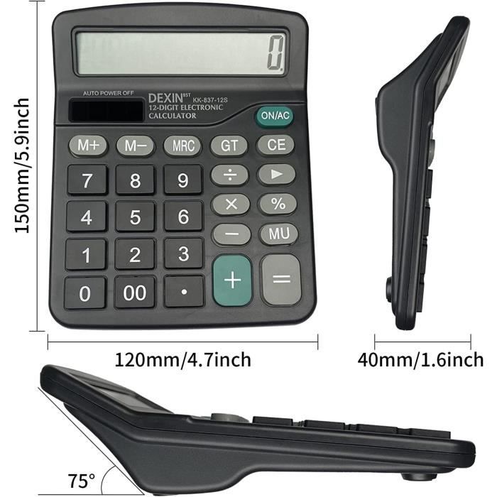 160 x 160 x 40 mm/6,3 x 6,3 x 1,6 pouces Batterie d'alimentation: 1 x pile bouton (incluse) CR2025 capacité 50 mah. Spécification:Condition: tout neuf Type d'élément: CalculatriceCaractéristiques: 12 chiffres Grand écran Deux modes d'alimentation: énergie solaire/pile bouton [capacité CR2025 50 mah] Pourcentage d'abdication total Fonction commune de calcul d'arrêt automatique Taille: env. Alimentation solaire, pas besoin de remplacer la batterieListe des packages:1 fois Calculatrice 1 x manuel Calculatrice de bureau Dual Power électronique à 12 chiffres grand écran LCD Les sources d'énergie solaire et sur batterie ont une longue durée de vie de la batterie et sont faciles à utiliser. Calcul des taxes rapide et pratique, le grand écran LCD affiche jusqu'à 12 chiffres. L'écran incliné est utilisé pour faciliter la lecture de l'écran et calcule avec précision Calculatrice 12 Chiffres Ordinateur Calculatrice - DUOKON - Modèle Solaire - Bureau Portable - Grand Écran Calculatrice Bureau économique Description du produit Caractéristiques du produit : Dimensions : 11,4 x 6,4 x 2 cm (4,49 x 2,52 x 0,79 cm). Affichage : écran LCD à 8 chiffres. Source d'alimentation : énergie solaire pile AA (non incluse). Fonctions : arithmétique de base, calcul de pourcentage, racine carrée, espace arrière, mémoire à 3 touches Arrêt automatique