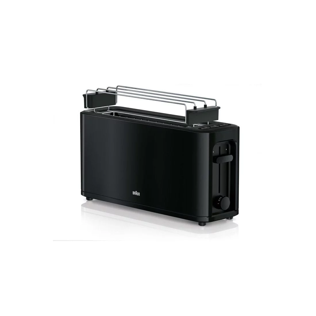 Range-cordon et tiroir ramasse-miettes Grille-pain Braun Breakfast1 HT 1010WH - blanche Il a 7 niveaux de grillage et rehausseur de pain pour vérifier le niveau de grillage. Il est accompagné d'une grille supérieure pour chauffer les pâtisseries comme les croissants Il est également livré avec un plateau supérieur pour réchauffer bollería. Dispose de fonctions réchauffage et décongélation. Avec sa couleur noire élégante et ses fonctions modernes, ce grille-pain est non seulement fonctionnel, mais aussi un appareil de cuisine stylé qui s'intègre parfaitement dans n'importe quelle cuisine Grille-pain 1 fente avec contrôle de défilement , Puissance de 1000 W L'élégant grille-pain Braun ht3110bk est un bon compagnon pour le petit-déjeuner. Toaster Grille Pain Braun Ht3110bk - Grille-pain, 1000 W, 1 Port, Contrôle | WhichOne Grille-pain 1000W Compact