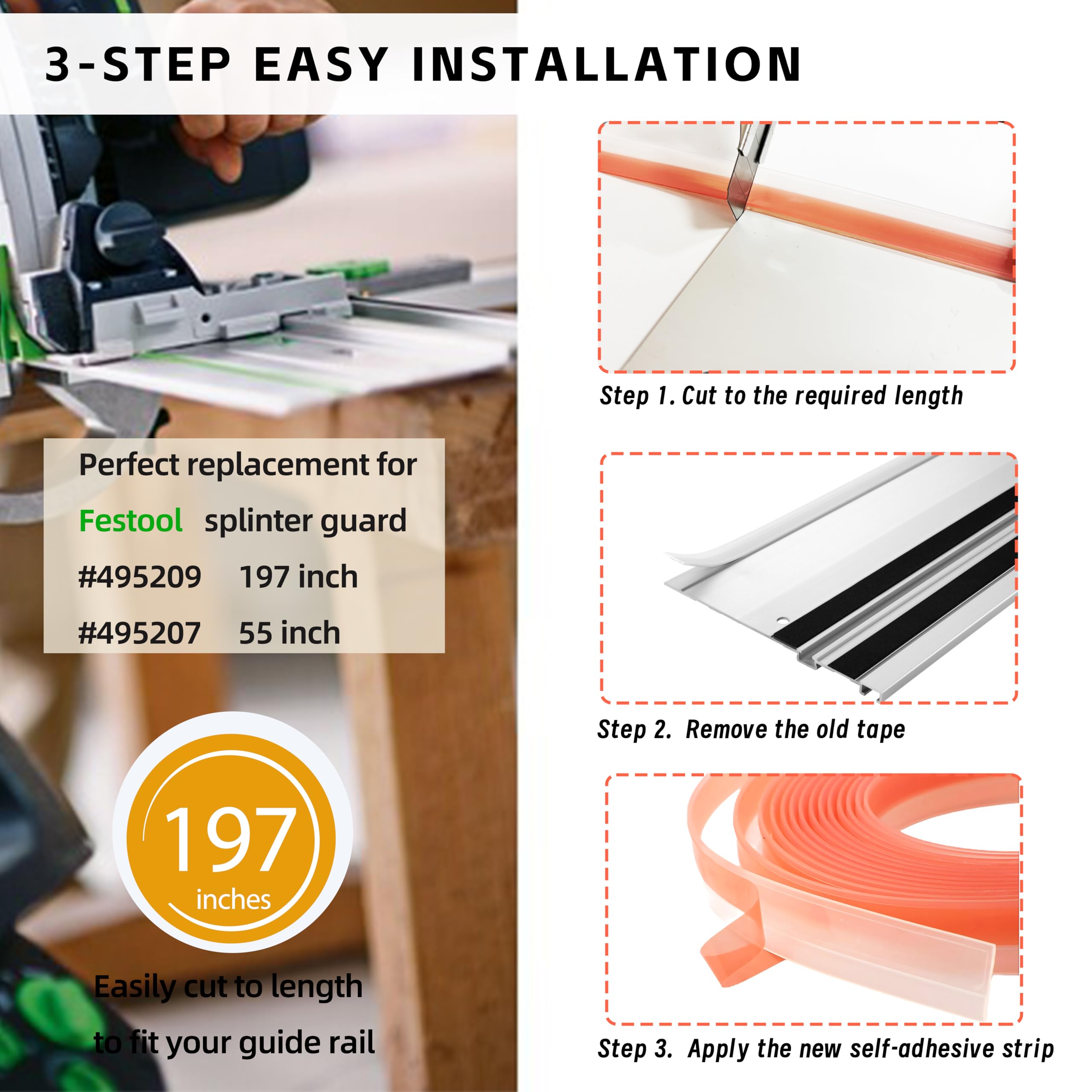 Bande De Rechange 495209 FS/2 FSK Capuchons De Protection En Plastique Pour Les Rails De Guidage à Billes Bosch Rexroth - Réf Accessoire Scie Guidage Fs/2 Installation et remplacement faciles : il suffit de fixer ce ruban de protection sur le bord de votre rail de guidage, avec son dos collant offrant une adhérence sûre pour une installation rapide et un fonctionnement fiable pendant vos projets de travail du bois Bande de glissement - FESTOOL 491741 - pour rail - L 10 m Bande de guidage PMR en Béton À 18,99€ HT Matériau : conforme à l'image. Performance durable : remplacer périodiquement votre bande de protection aide à maintenir des coupes parfaites, avec cette longueur de 3000 mm offrant une utilisation prolongée et une protection constante contre les éclats sur divers matériaux Pour bande de guidage d'éclatement 2 pièces 495209 pour protection de bord de Contenu de l'emballage : 1 barre de guidage de 300 cm., Remarque : 1., La couleur réelle de l'article peut être légèrement différente de celle des photos présentées sur le site Web en raison de nombreux facteurs tels que la luminosité de votre écran et la luminosité., 2., Les mesures étant prises à la main, les tailles indiquées peuvent varier légèrement. S'adapte au bord du rail , Longueur : 3 m. Remplacer périodiquement votre protection anti-éclats peut garder vos coupes parfaitement Couleur : conforme à l'image. Caractéristiques : Nom du produit : barre de guidage pour échardes de guidage. Modèle applicable : SP 5000., Numéro de pièce : 495209., Quantité : 1 pièce. Taille : rouleau de 3 m / 300 cm/3000 mm de longueur. 495209 pour bande de rechange de protection anti-échardes de rechange 495207 pour la bande de rechange de protection anti-éclats et est compatible avec les rails de guidage FS/2, FS/2 KP, et FSK.