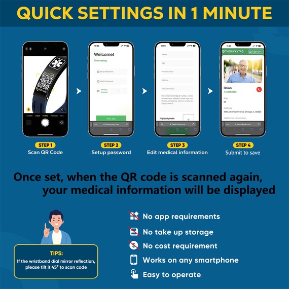 Ses dimensions précises garantissent un maintien sûr pendant le sport, les activités en extérieur et le quotidien sans glisser. 2、Matériau : Fabriqué en acier inoxydable durable, ce bracelet résiste aux rayures et à la corrosion. Bracelet d'identification médicale en acier inoxydable | Groupon Shopping OWO edical Custo Gravé Silicone Réglable Sport No ID... 4、Emballage : Chaque bracelet est livré avec une carte médicale d’urgence et une pochette en velours douce pour un rangement sécurisé. Bracelet médical personnalisé Bracelets d'alerte médicale personnalisés Enregistrer un code QR pour le passe de mobilité Sécurité Bracelet en silicone Cet emballage pratique protège le bracelet pendant l’expédition et offre un moyen organisé de le conserver, assurant son parfait état. Son design élégant, sa praticité et son confort en font un cadeau réfléchi pour le quotidien, le sport, le fitness ou les activités de plein air. Bracelet Alerte Médicale Bracelets D'alerte Médicale QR Code Pour Hommes Et Femmes Enfants Accessoire Sécurité Quotidien La combinaison de robustesse et de légèreté assure une utilisation longue durée et un port confortable lors de diverses activités sans irritation. Bracelet Médical Sauveur – Protège dans les Moments Critiques Sa conception étanche et légère le rend adapté à un usage quotidien, à la course, au fitness et aux voyages, tout en conservant une esthétique moderne et minimaliste.