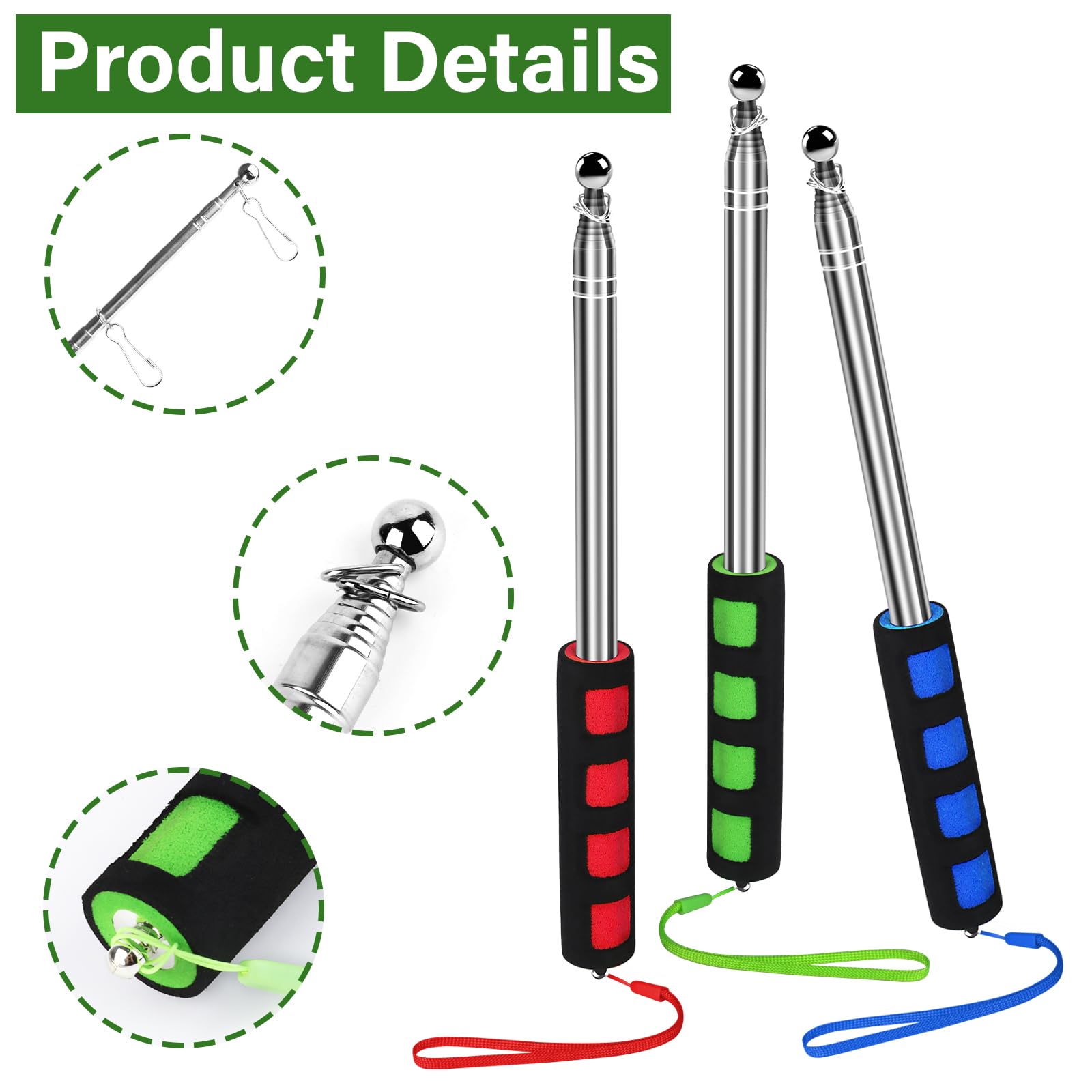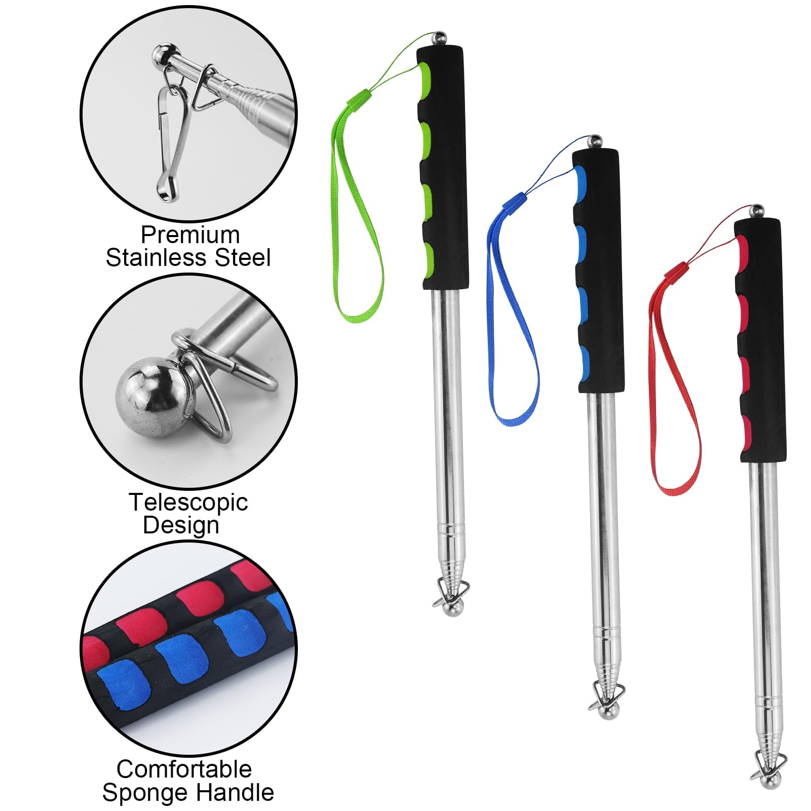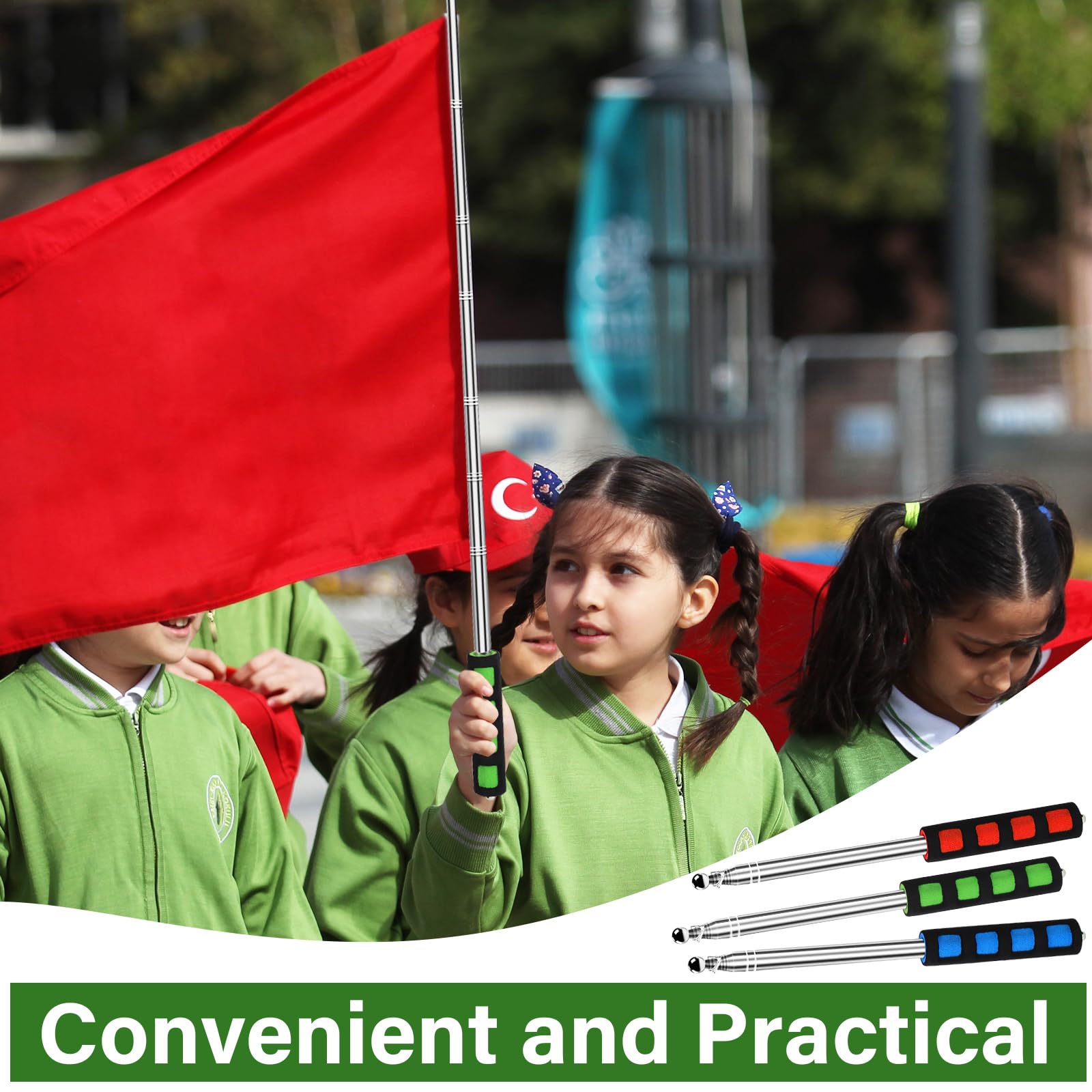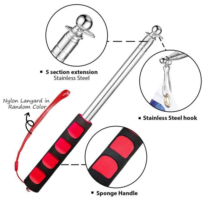 La poignée en éponge écologique présente un design ergonomique pour une prise sûre et confortable. Contenu de l'emballage : Vous recevrez 3 mâts télescopiques portables et 12 pinces. 15 pièces 50MM drapeau pôle mousqueton crochets ac... – Grandado Anley ât de drapeau télescopique portable de 1,5 avec clips – Léger... Conception télescopique : avec une conception télescopique, notre mât de drapeau de guide touristique peut être ajusté à la taille souhaitée dans une longueur d'étirement maximale de 2 m. Mât Télescopique Drapeau - Inoxydable - 2m - Portable - 4 Clips Lorsqu'il est entièrement déplié, il mesure 200 cm et peut être plié jusqu'à un format compact de 27 cm pour un rangement facile. Ils constituent un outil essentiel et pratique pour les enseignants, les guides touristiques et les étudiants. Mat Drapeau BUKYCAT Mât De Drapeau Extensible, Acier Inoxydable Mât Drapeau Portable Extensible, Baton Pour Drapeau Publicitaire Avec Poignée Antidérapante, Pour Enseignants Guide Touristique, Coach Mat De Drapeau Ces mâts peuvent accueillir des drapeaux jusqu'à 90 cm x 150 cm, ce qui les rend parfaits pour les guides touristiques, le camping en plein air et comme pointeurs pour enseignants. Spécifications : Nom du produit : Mâts télescopiques Matériau : Acier inoxydable Couleur : Bleu, rouge, vert Quantité : 3 pièces Longueur : 200 cm déplié et 27 cm plié Occasion : Enseignement, voyages, alpinisme, camping et défilés. Ces mâts peuvent accueillir des drapeaux jusqu'à 90 cm x 150 cm, ce qui les rend parfaits pour les guides touristiques, le camping en plein air et comme pointeurs pour les enseignants.